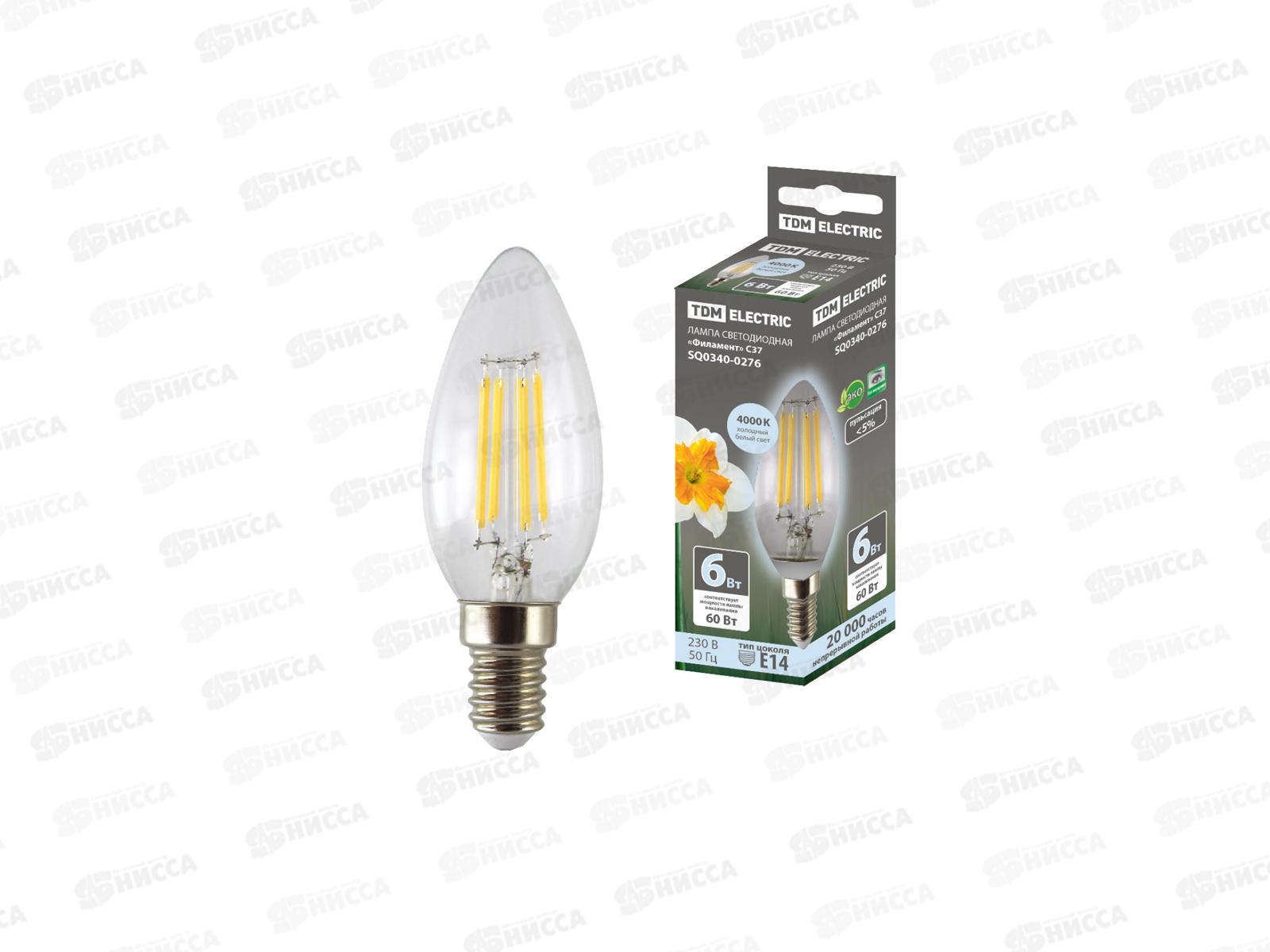 Лампа светодиодная TDM С37-6 Вт-230 В-4000 К–E14 Филамент TDM, 0276