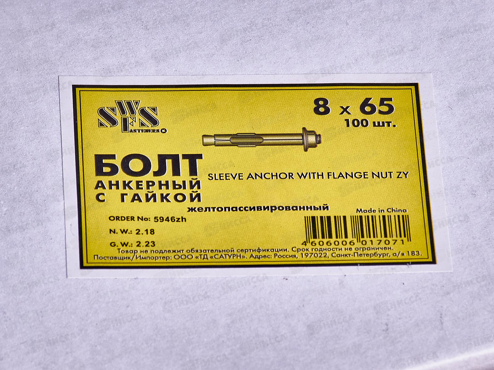 Анкерный болт с гайкой 8*65 100штук, СВФС