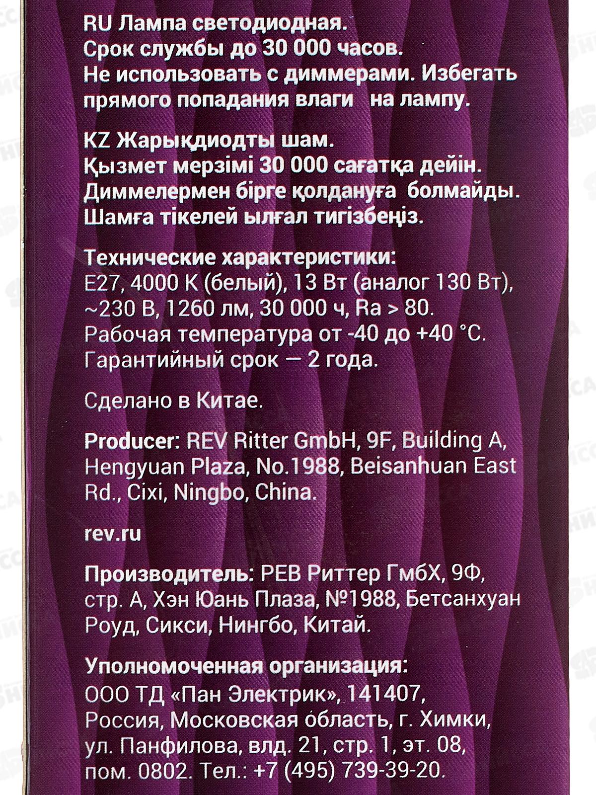 Эквивалент лампы накаливания: 130 Вт