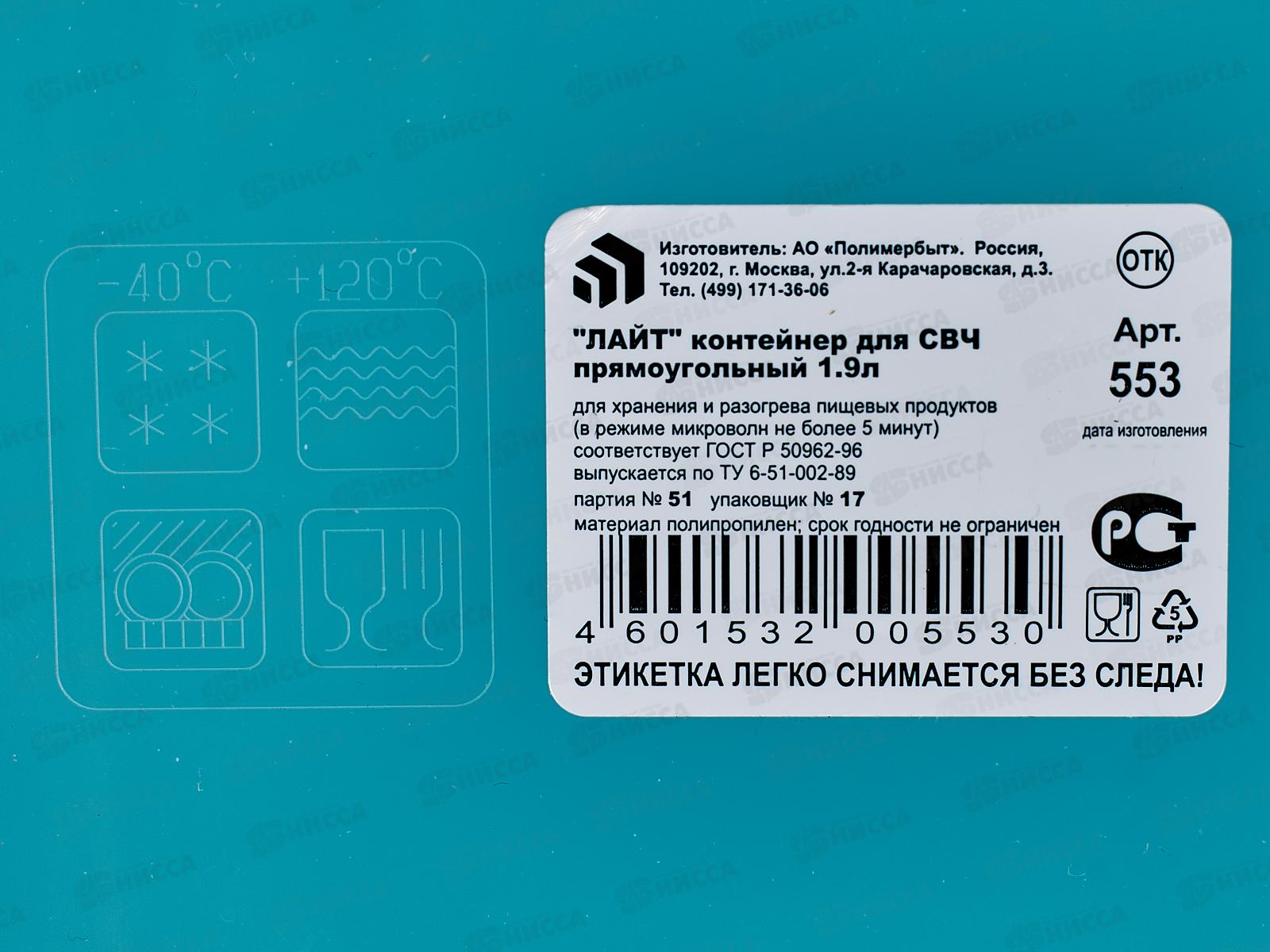 Контейнер СВЧ 1,9л Лайт прямоугольный С553 *30