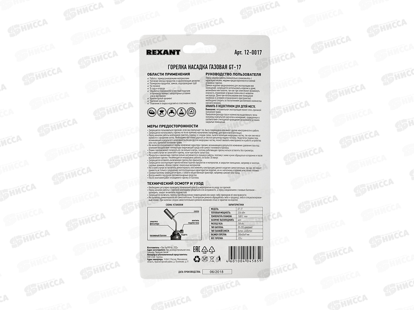Горелка газовая GT-17 (насадка механическая) REXANT, 12-0017