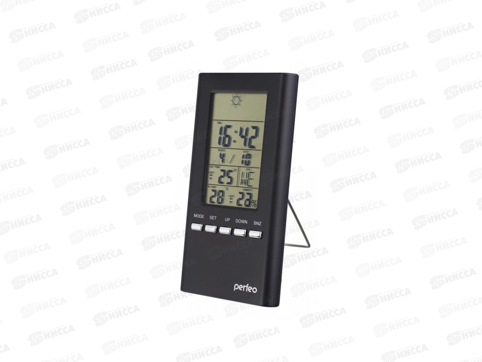 Часы-метеостанция Perfeo Meteo чёрный, время, темп., датчик ул. темп., влажность, PF-S3331F
