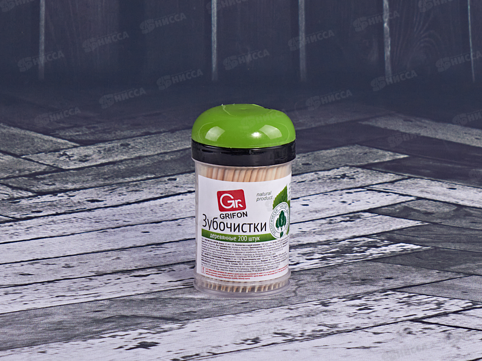Зубочистки Grifon из дерева 200шт в пластиковой баночке *24 400-003