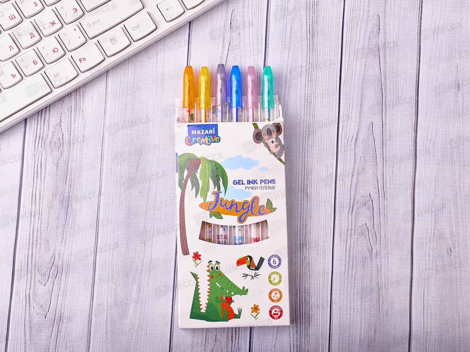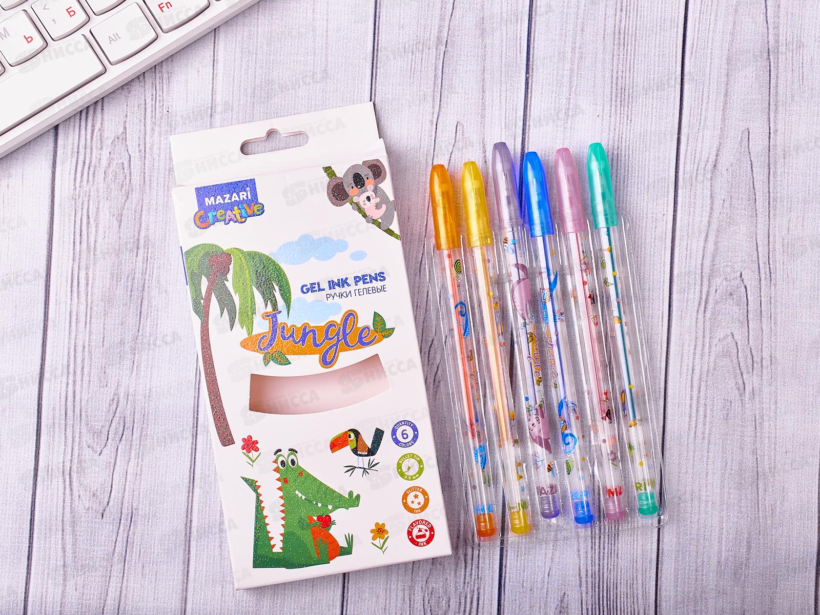 Ручки гелевые MAZARI Jungle 6цветов с блестками 0.9, M-5426-6 *10/80/160