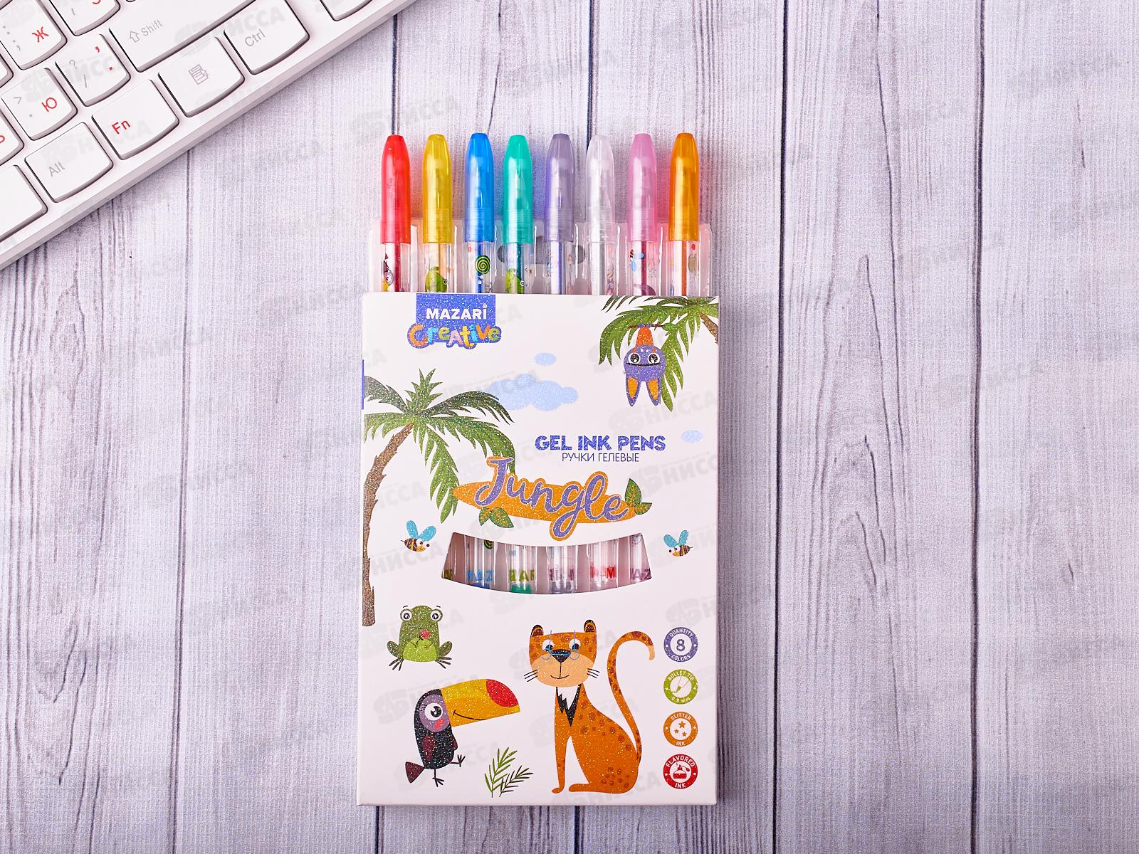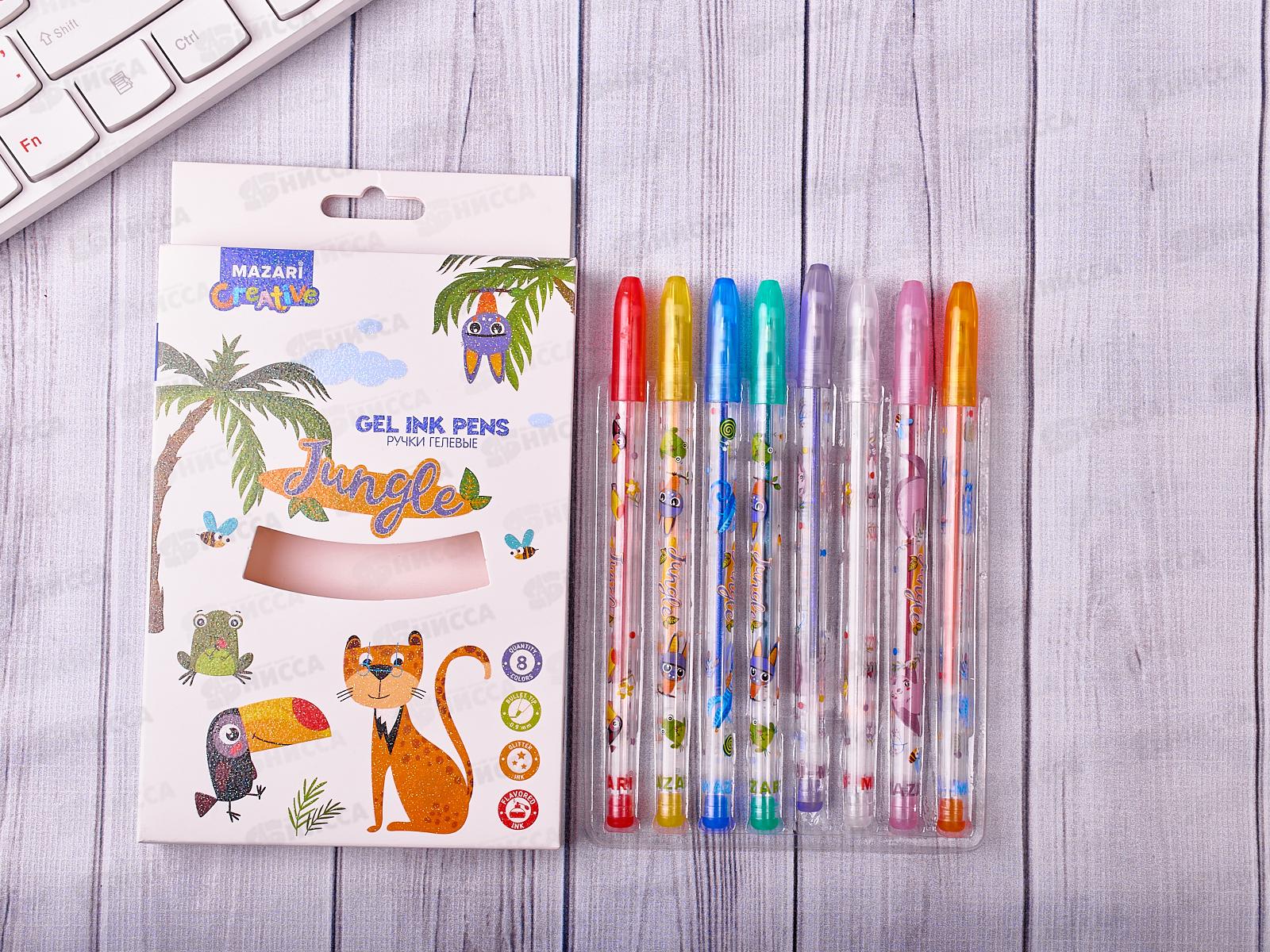 Ручки гелевые MAZARI Jungle 8цветов с блестками 0.9, M-5426-8 *10/80/160
