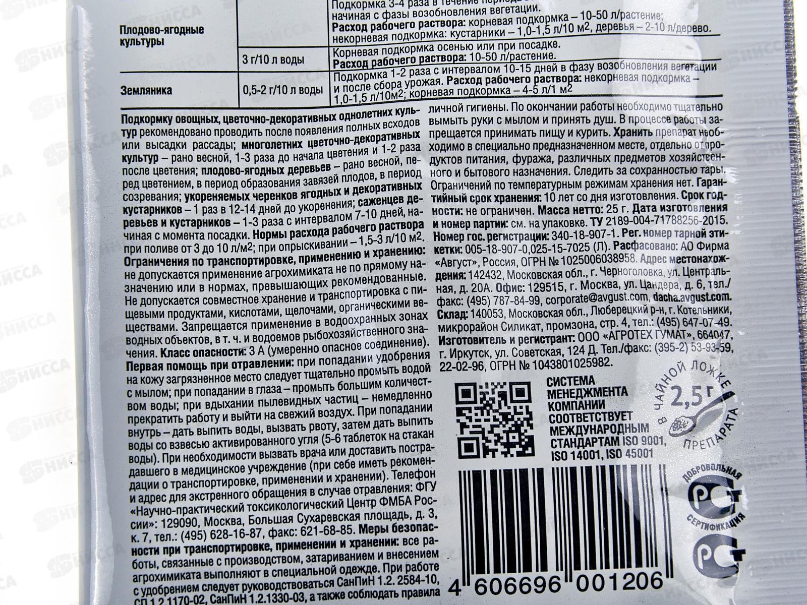 Назначение: для замачивания семян, корневой и некорневой подкормки