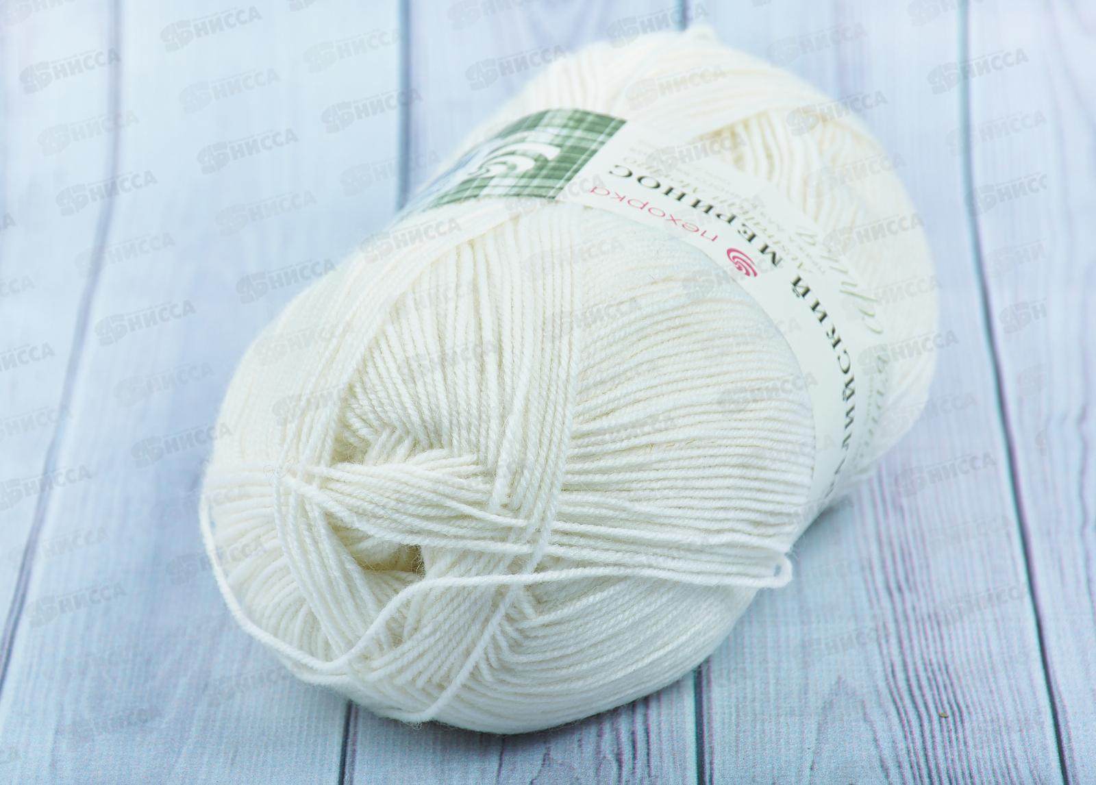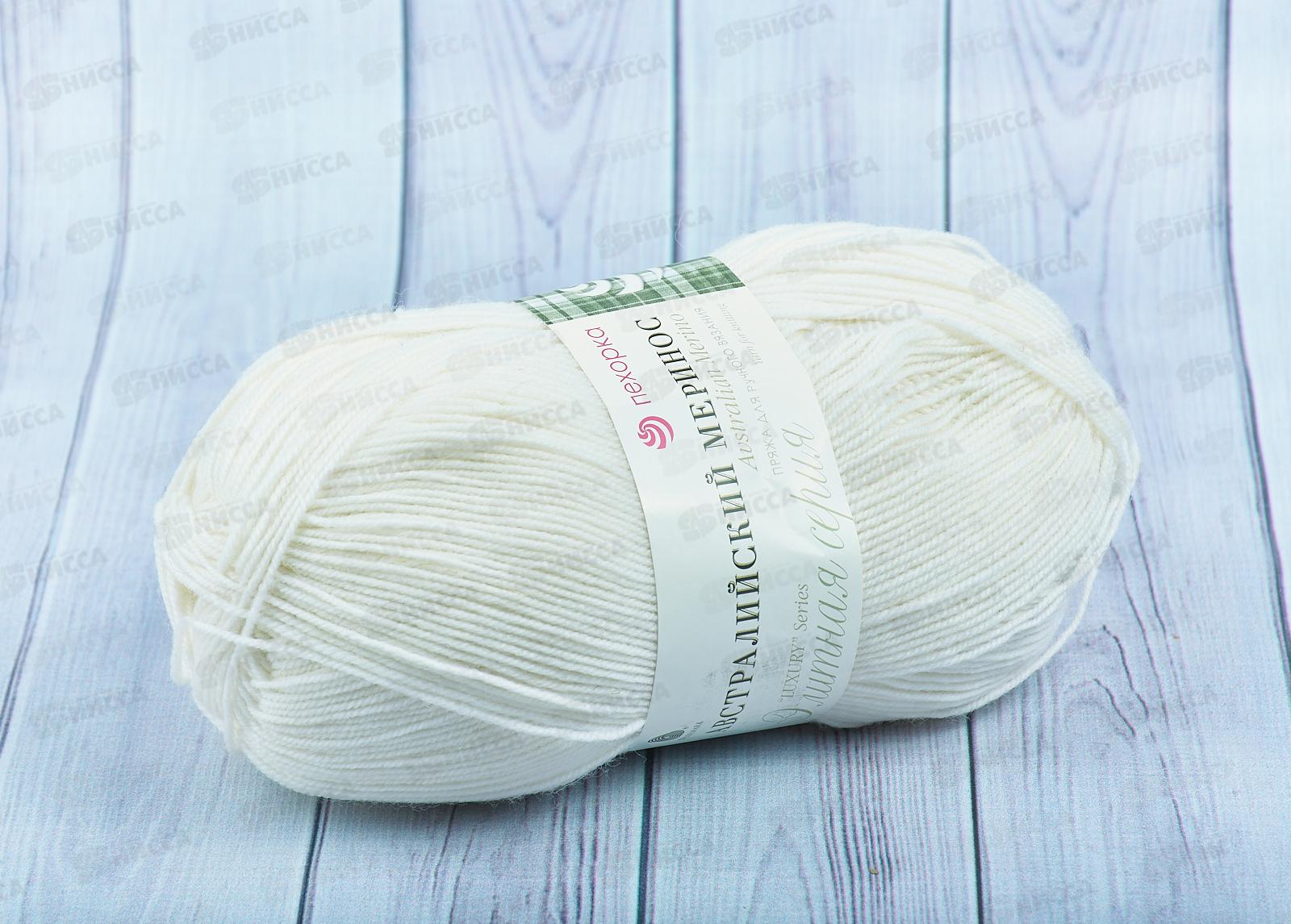 Пряжа Австралийский меринос Белый 01100г400м шерсть 95% акрил 5%