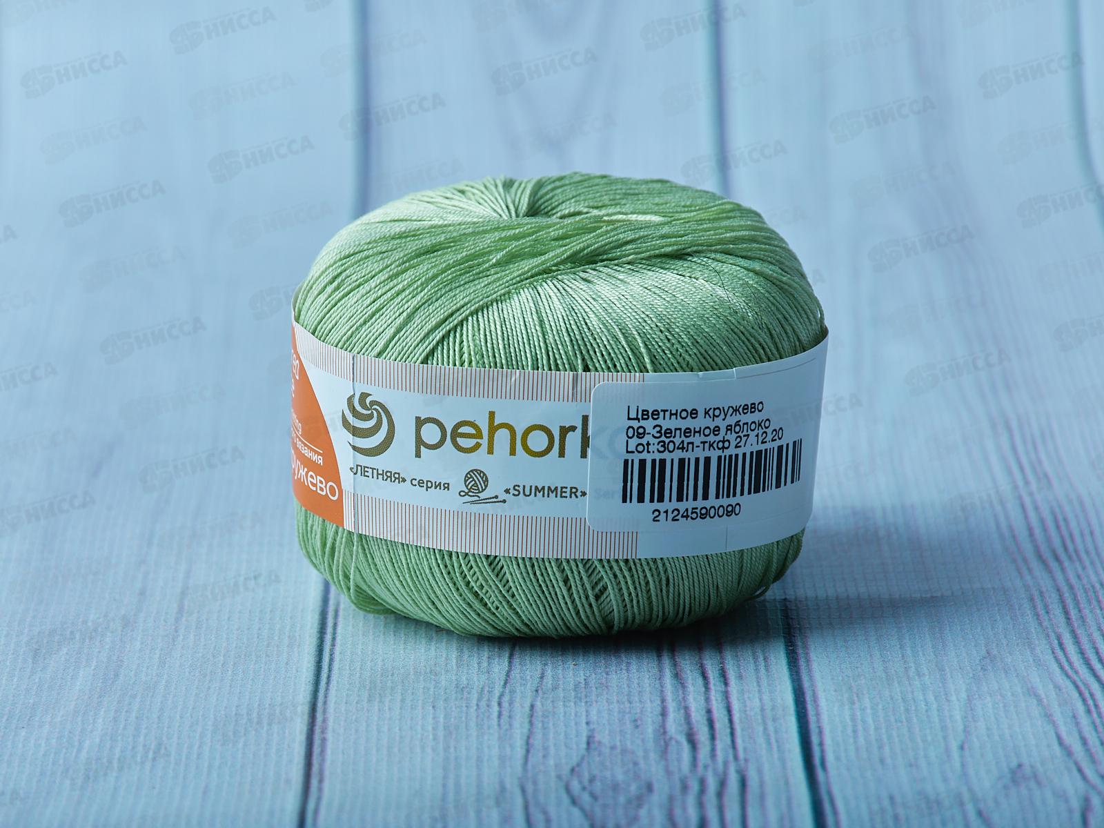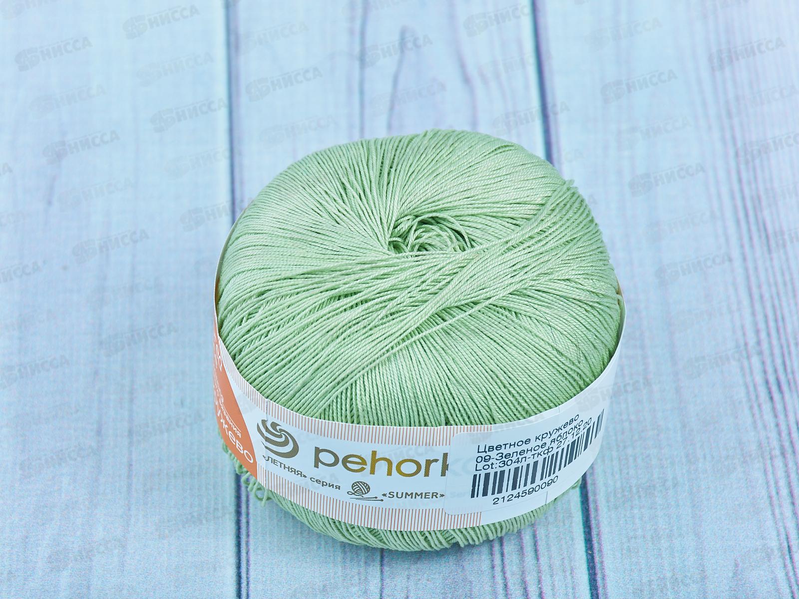 Пряжа Цветное кружево 09 Зеленое яблоко 50гр Хлопок100%