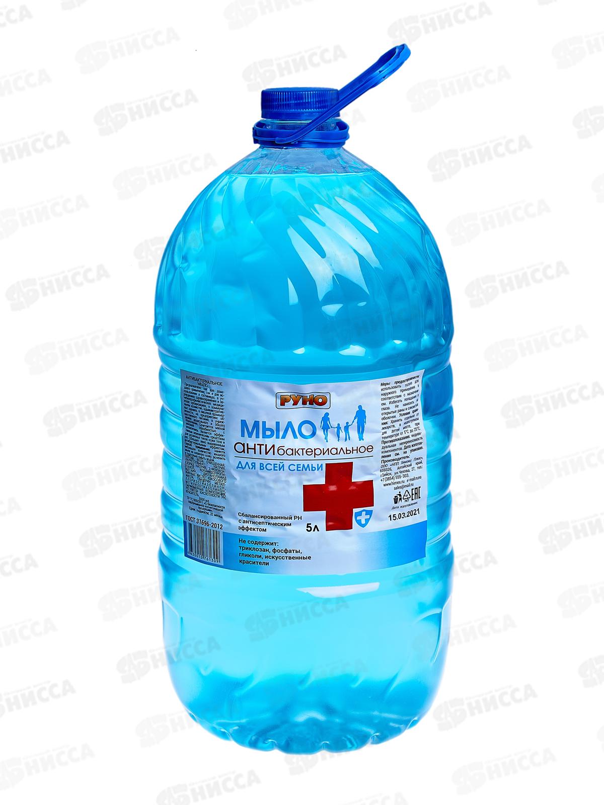 РУНО жидкое мыло Антибактериальное Для всей семьи бутылка 5,0л *2