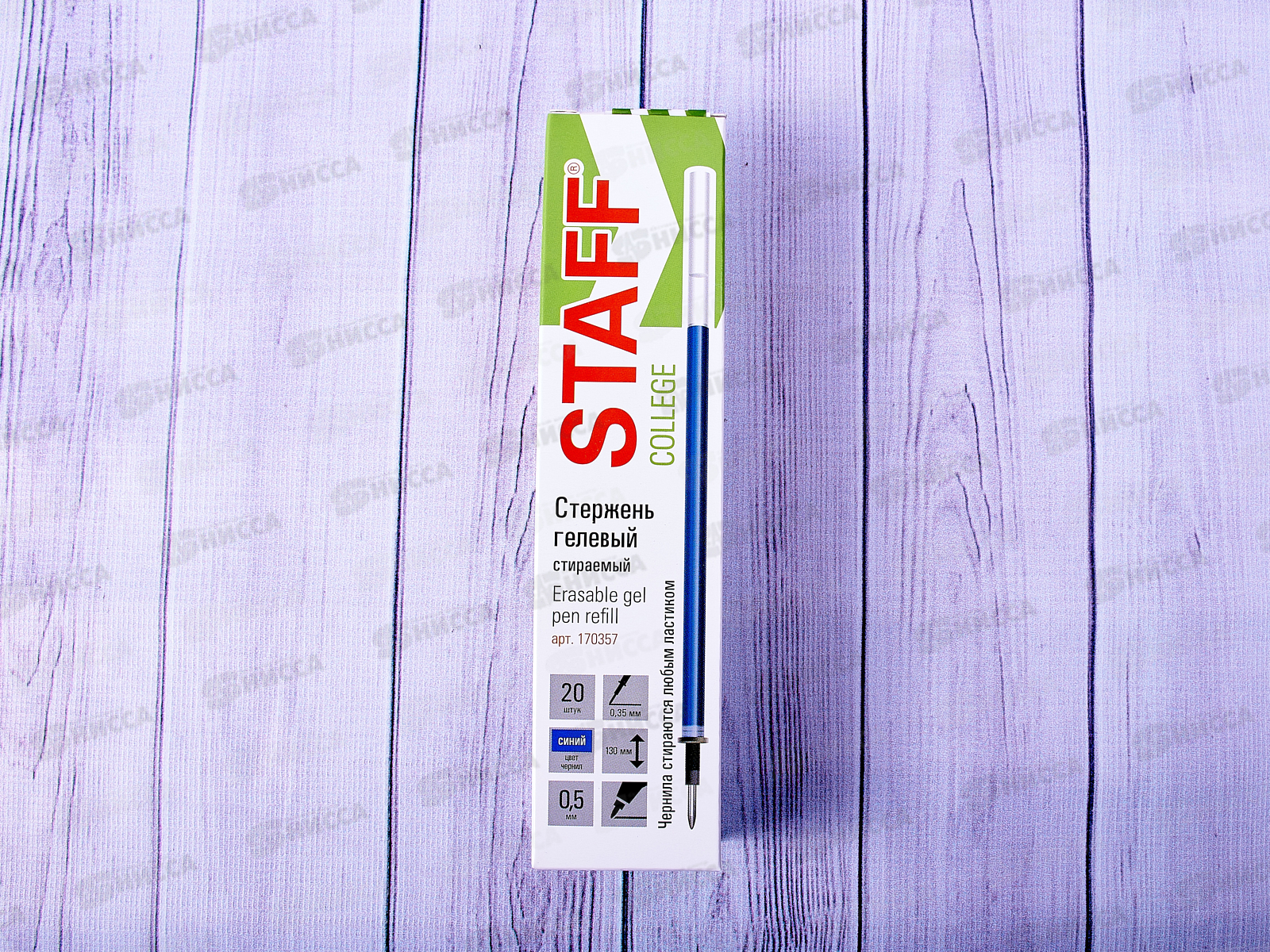 Стержни гелевые STAFF стираемый 130мм синий, 0.5мм, игла,GP109R,170357*20