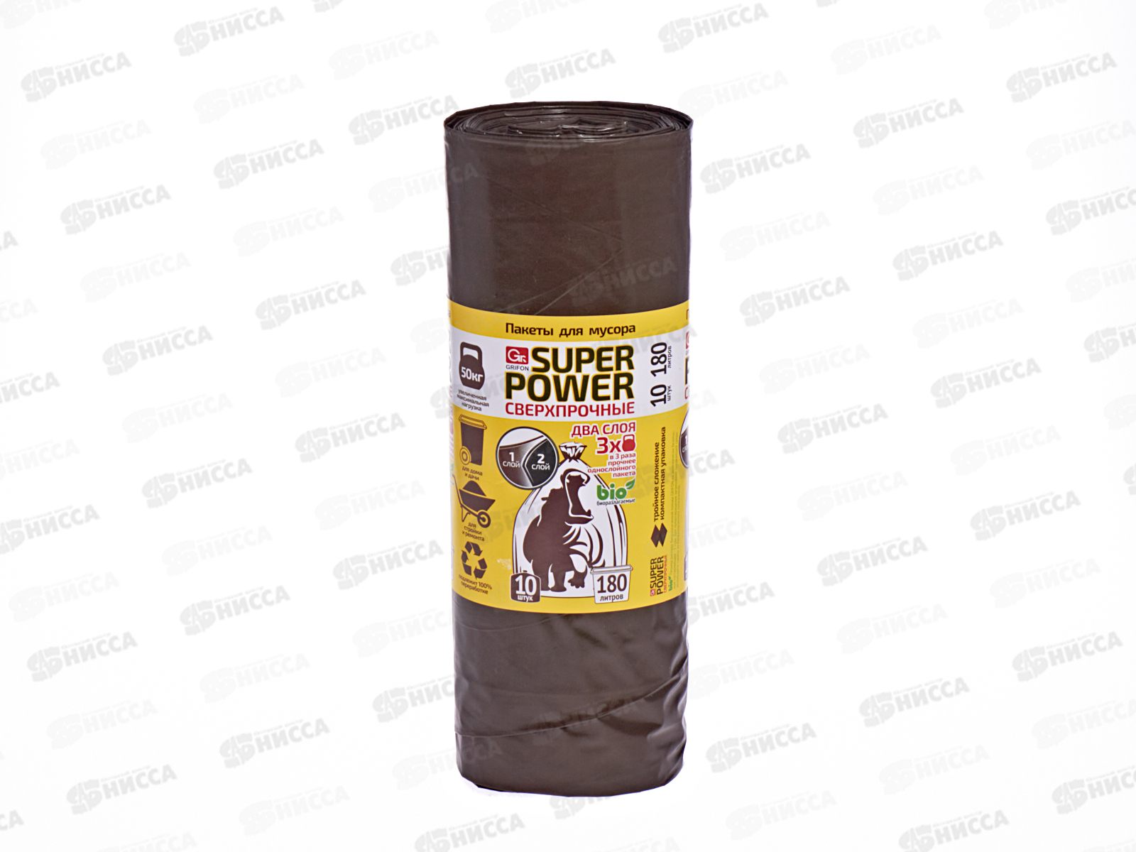 Пакеты для мусора GRIFON двухслойные особо прочные 180л 10шт рулон 101-093 *15