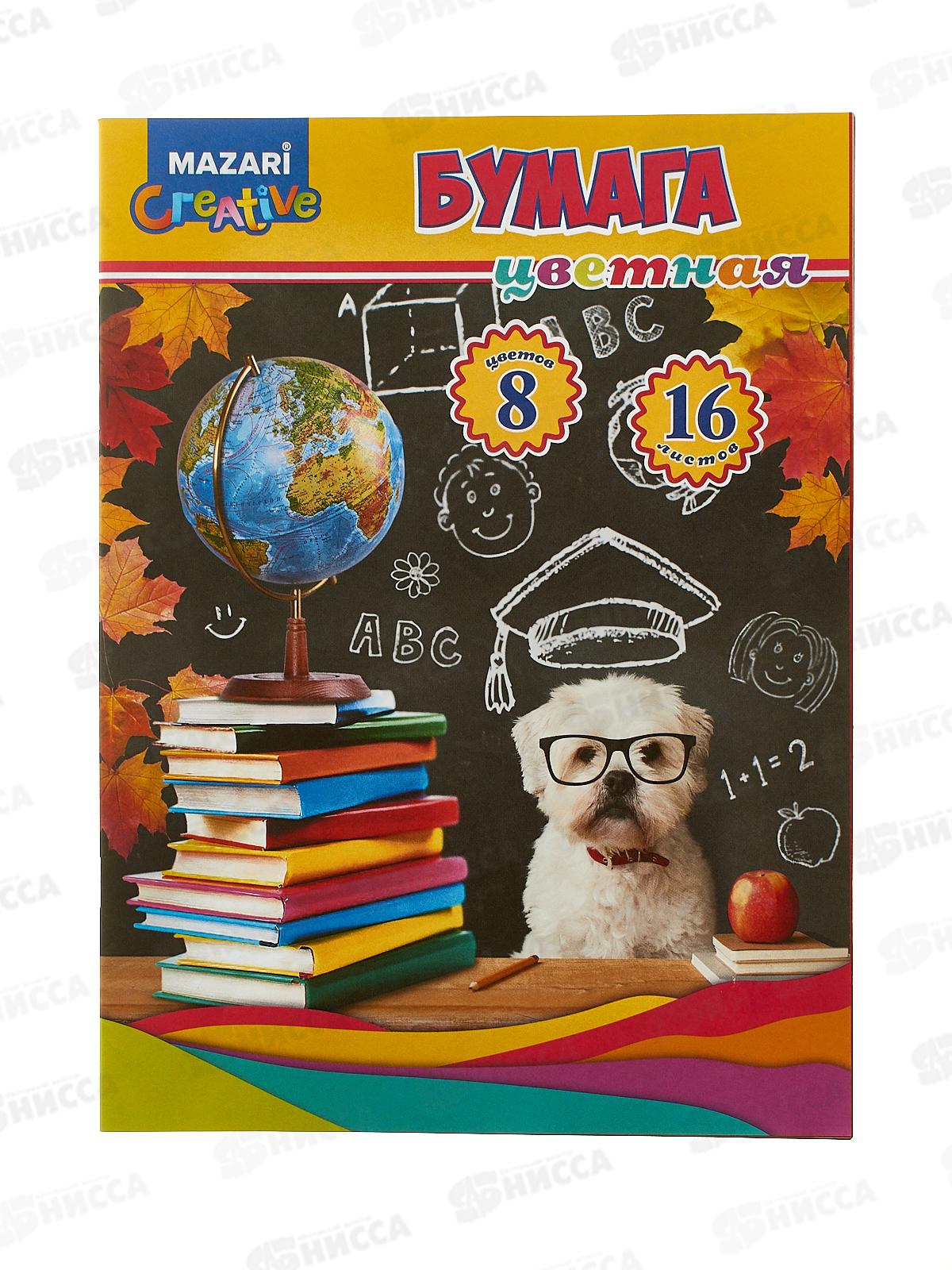 Цветная бумага MAZARI 16л. 8цв,мел.,М-16189*50
