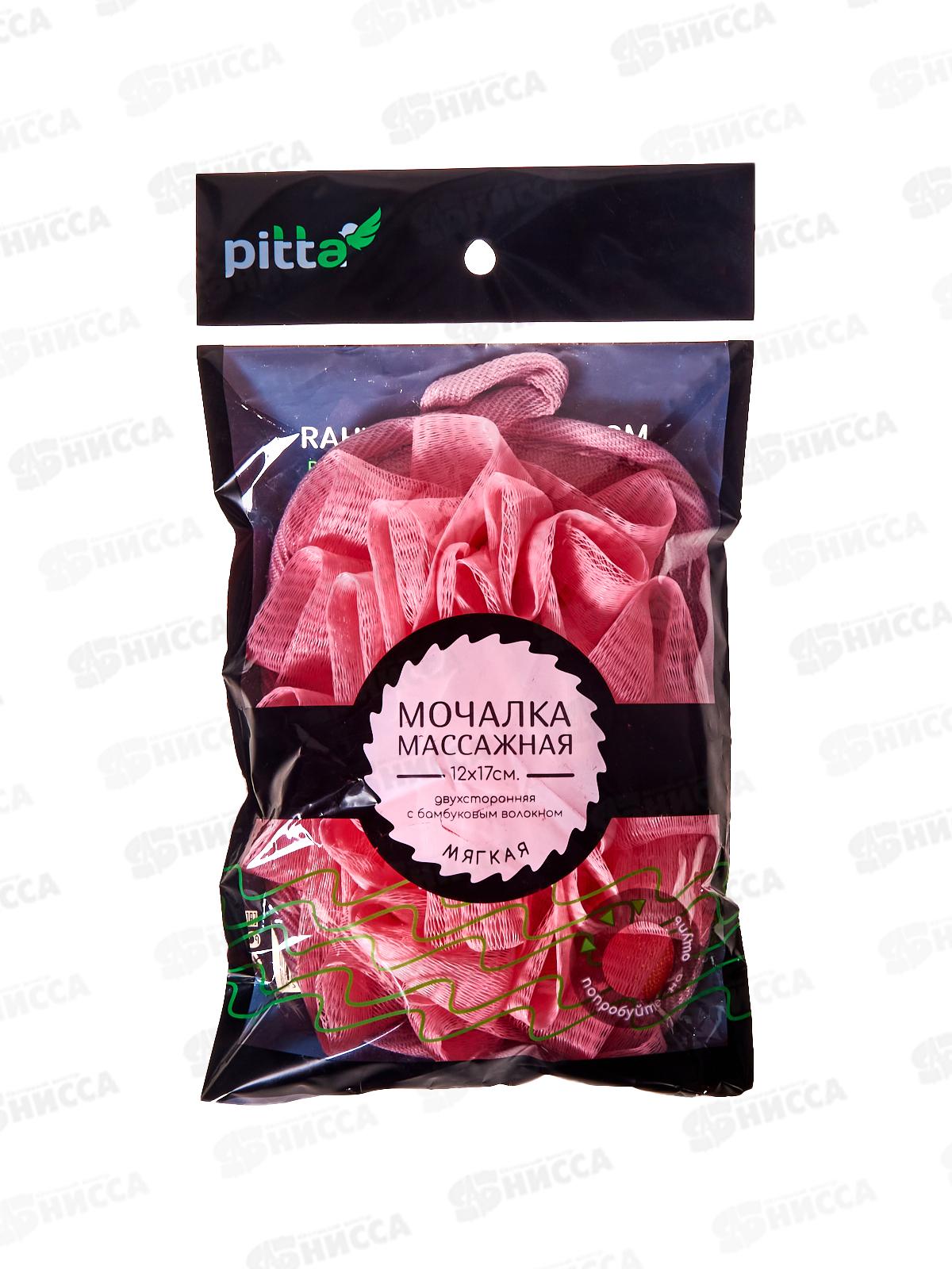 Мочалка для тела массажная мягкая двухсторонняя "PITTA", с одной стороны имеет спонж-сетку, с другой стороны - бамбуковое волокно. Сетчатая сторона из нейлона образует обильну пену, экономя гель для душа, мягко моет и отшелушивает. Сторона из бамбукового волокна обладает натуральными бактерицидными свойствами и подходит для очищения кожи после загара или купания новорожденных.