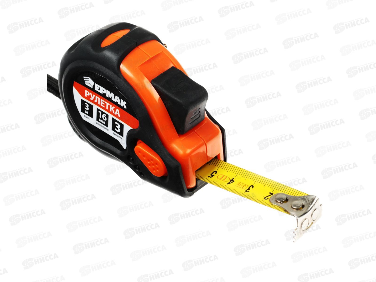 Рулетка 3м ЕРМАК 16мм обрезиненный корпус 658-087 г *12