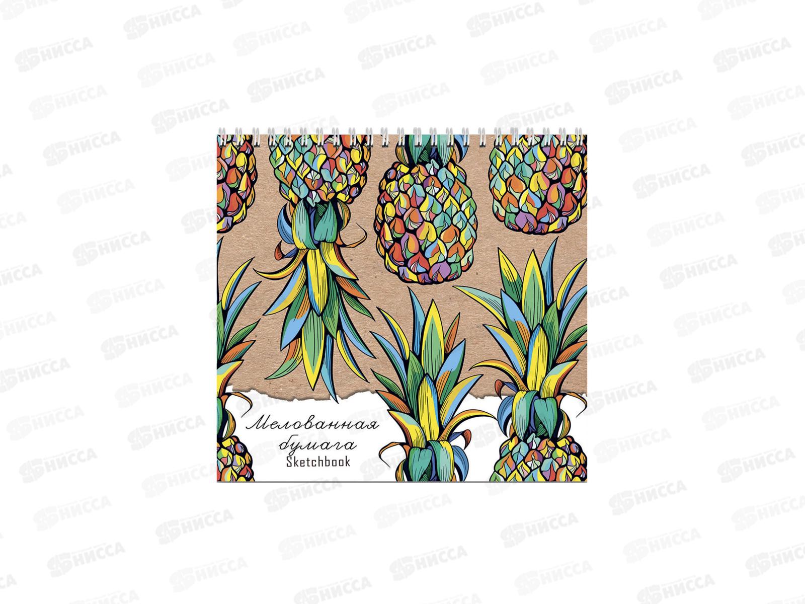 Скетчбук ПП 40л Яркие ананасы, на гребне 190х190мм, 40-5657 *16