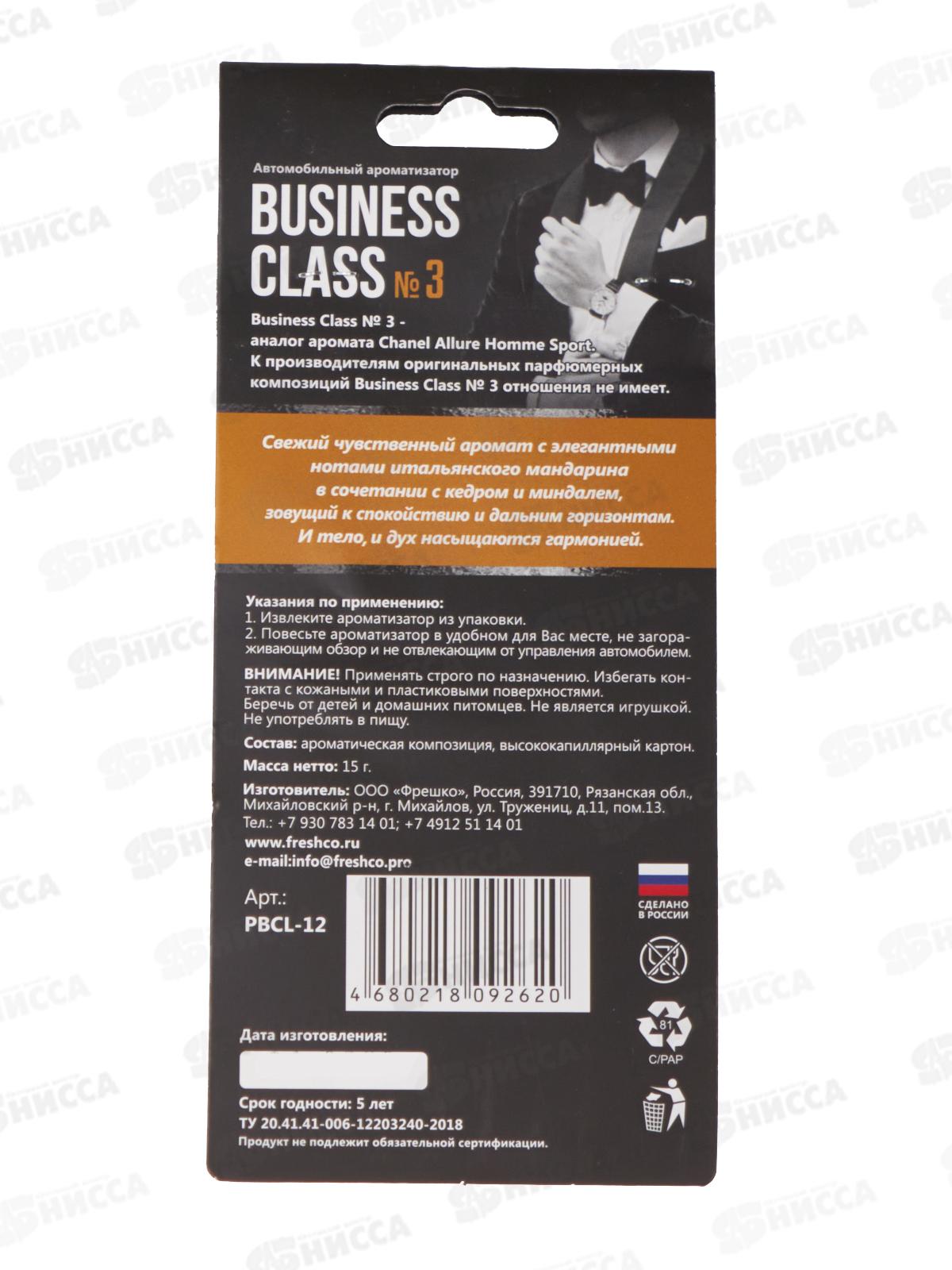 Ароматизатор картонный Freshco Business Class Chanel *10