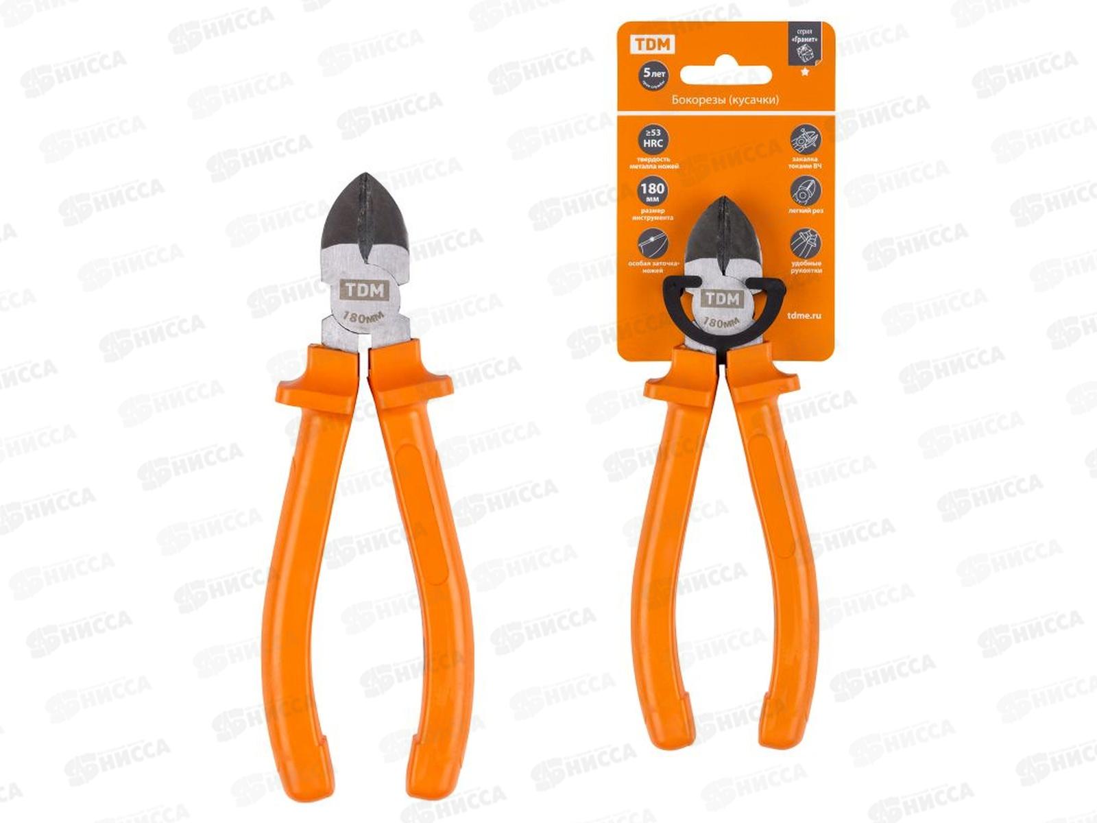 Бокорезы-кусачки TDM с пластиковыми рукоятками, углеродистая сталь, 180 мм, серия Гранит SQ1009-0302 подходит для следующих сфер применения: обрезка (обкусывание), формовка кабеля, откручивание (закручивание) элементов резьбовых соединений, захват и манипулирование деталями. Имеет ПВХ-рукоятки, которые не скользят в ладонях. Это позволяет эффективно работать в любых условиях.