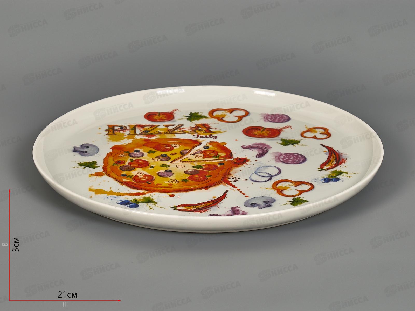 Большое, удобное блюдо, которое прекрасно подойдет для подачи Ваших закусок, бутербродов, печенья, торта, а главное пиццы. Сделанное из фарфора, оно абсолютно безопасно для здоровья. Также может использоваться как сервировочная тарелка, то есть может играть роль подставки, при подаче большинства блюд. Помогает защитить стол или скатерть от крошек, пятен, контакта с нагретыми поверхностями.