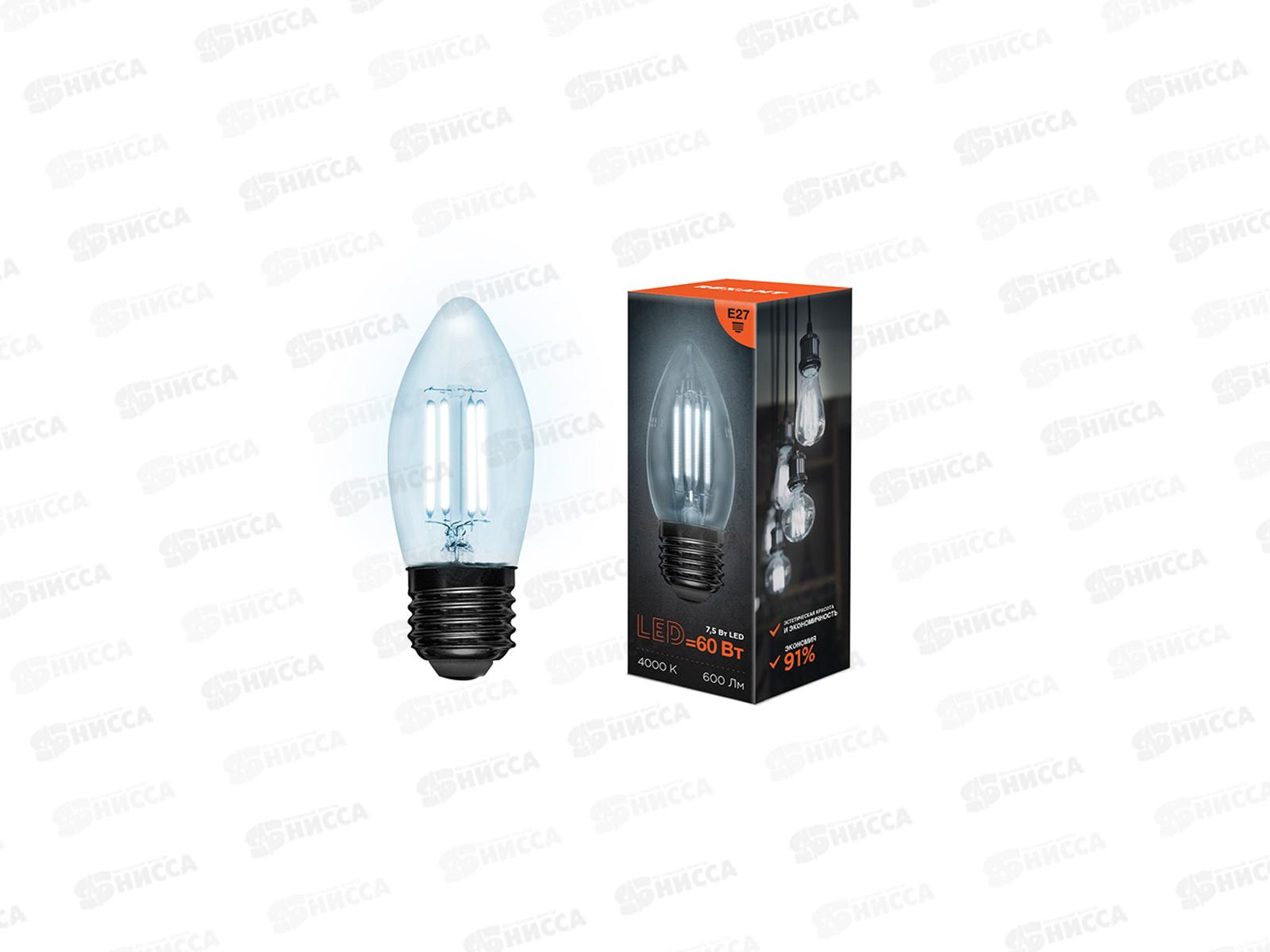 Лампа филаментная REXANT свеча CN35 7,5Вт E27 4000К прозрачная 604-086