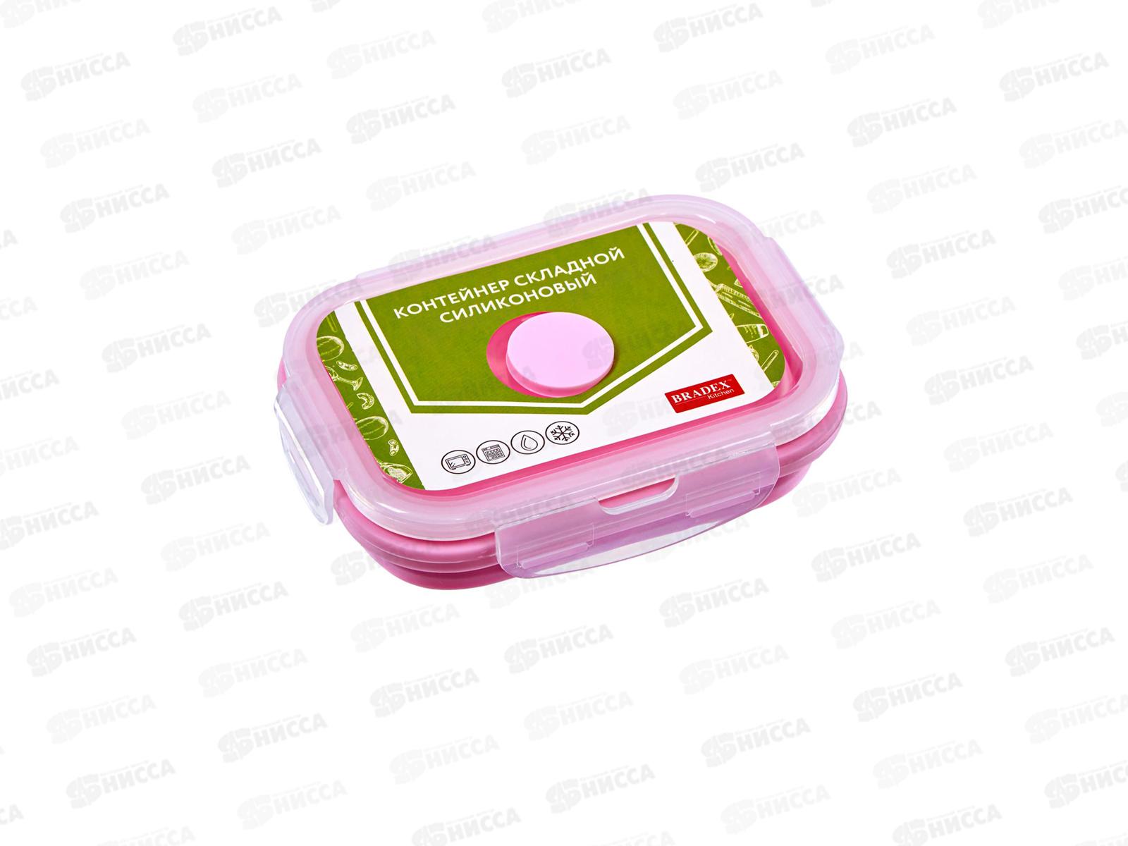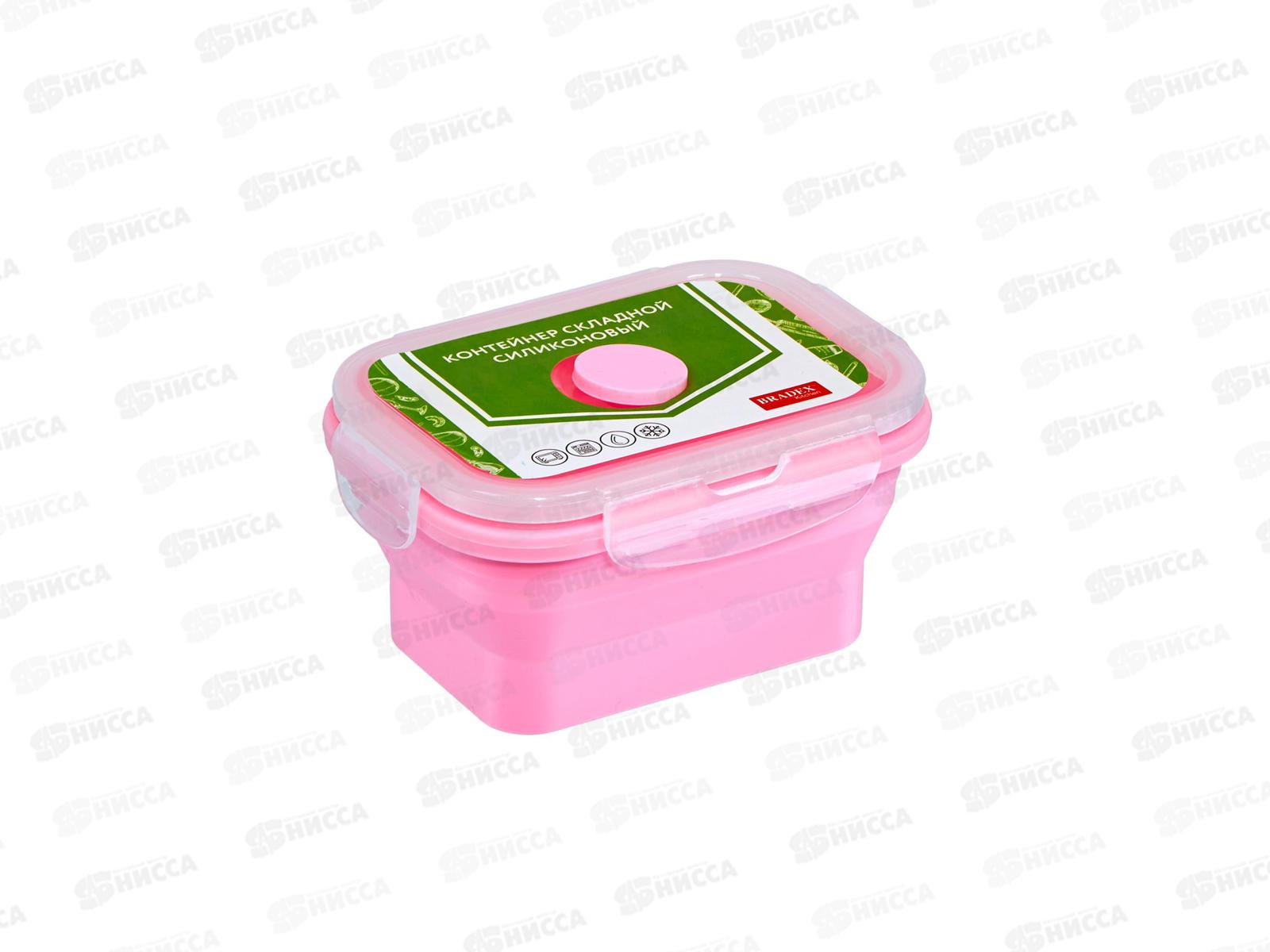 Контейнер складной силиконовый 350мл 13*10см розовый TK 0481 *20
