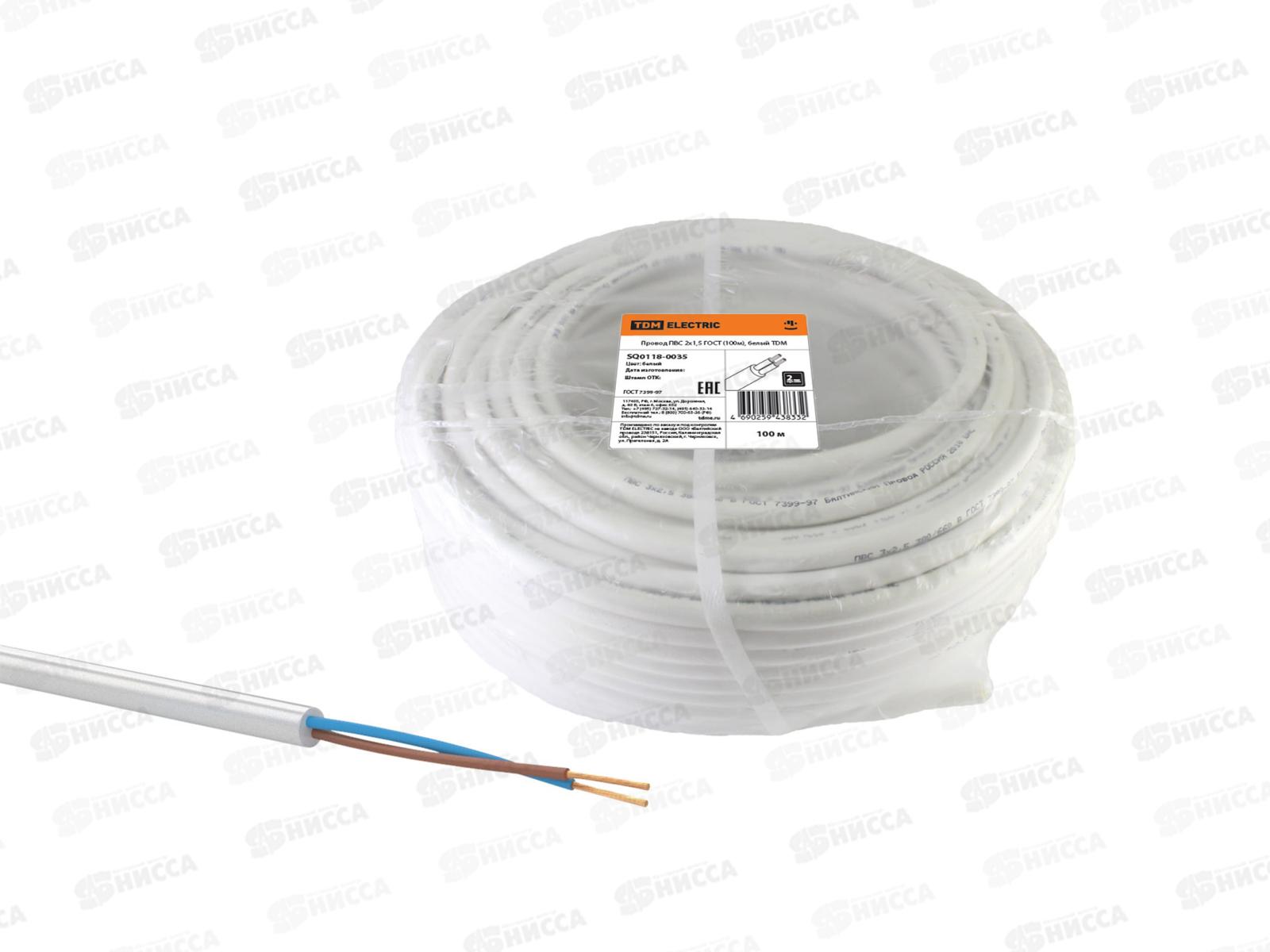 Провод ПВС 2*1,5мм белый ГОСТ, TDM, 0035 *100