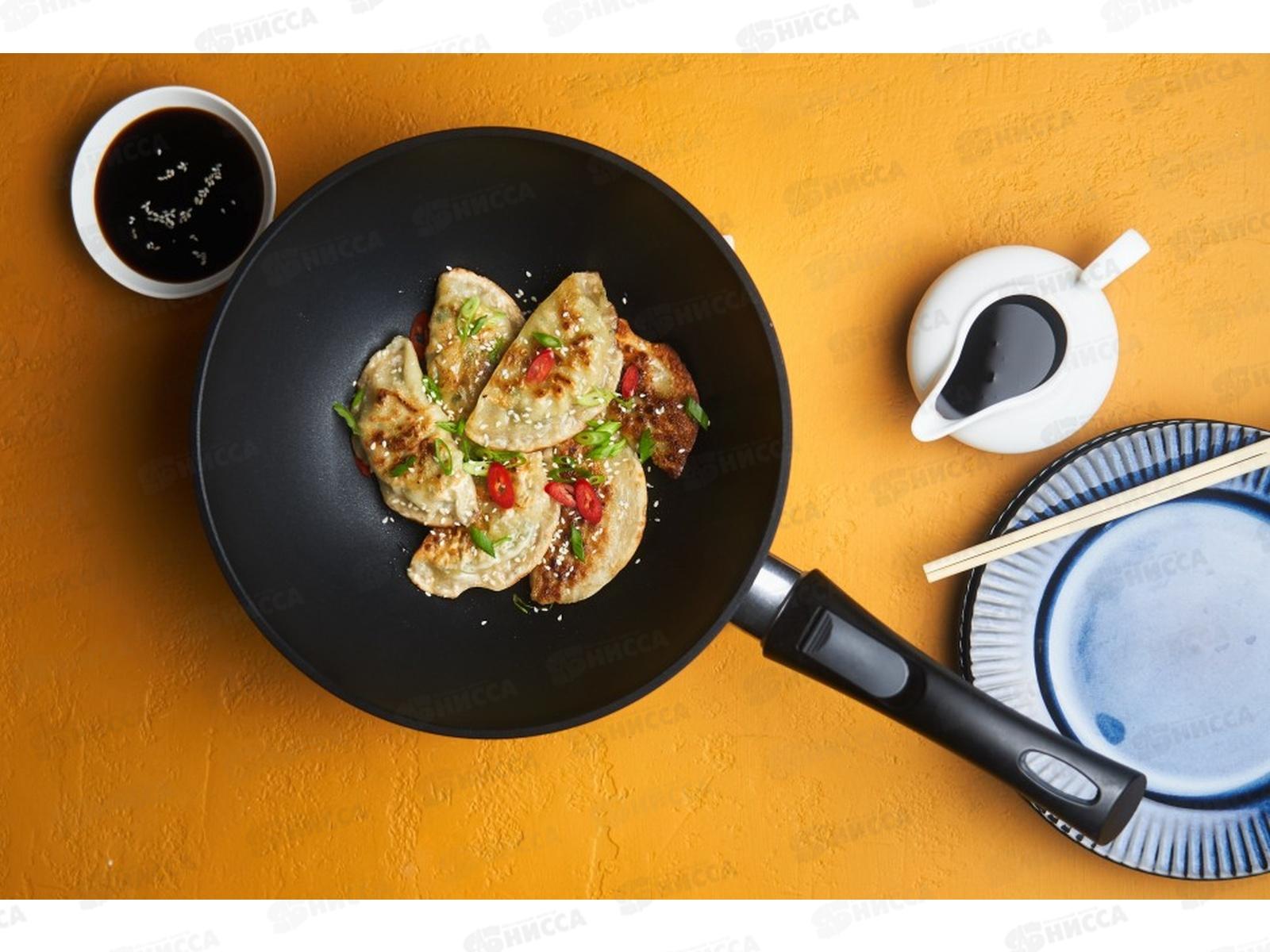 Азиатская кухня считается по праву одной из самых полезных и сбалансированных кухонь мира. Вместе со сковородой «Вок» вы сможете прикоснуться к многовековому наследию рецептов азиатских стран. Не секрет, что воссоздать удивительные восточные рецепты на обычной посуде практически невозможно, так как все ингредиенты требуют особой обжарки: чередование высокой и средней температур. Вдохновляясь опытом наших азиатских коллег, мы разработали уникальную по своей технологии сковороду «Вок»: конусовидная форма обеспечивает быстрое и крайне сильное нагревание дна и более медленное разогревание высоких бортов сковороды, равномерно расширяющихся к верху. Такая форма корпуса посуды обеспечивает моментальную обжарку продуктов на дне сковороды, а последовательное перемещение готовых продуктов ближе к стенкам позволит равномерно и быстро обжарить все наполнение вока. Стоит отметить, что блюда китайской и тайской кухонь зачастую требуют не только специальной обжарки, но и тушения или запекания. Данную особенность мы также учли и при создании сковороды использовали удобный механизм съемной ручки, а это значит, что вок в любой момент сможет отправиться в духовку. Самой же уникальной особенностью сковороды «Вок» серии «Титан» является инновационное покрытие «ТитанПК II», гарантирующее долговечность антипригарных свойств, безопасность и сохранение эстетических характеристик. Особая устойчивость к механическим повреждениям продлевает срок эксплуатации сковороды и не требует особенного ухода: сковорода легко моется в посудомоечной машине. Отправьтесь в кулинарное путешествие вместе с «Нева металл посуда»!