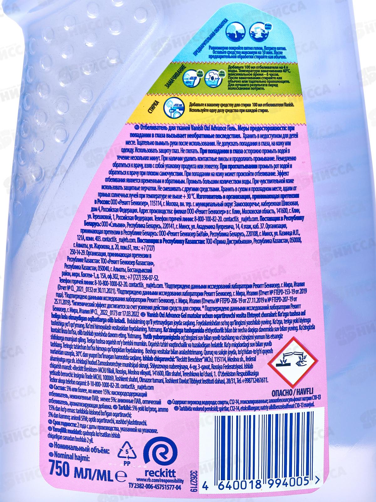 ВАНИШ OXI Advance пятновыводитель/отбеливатель гель 750мл 314457 *12