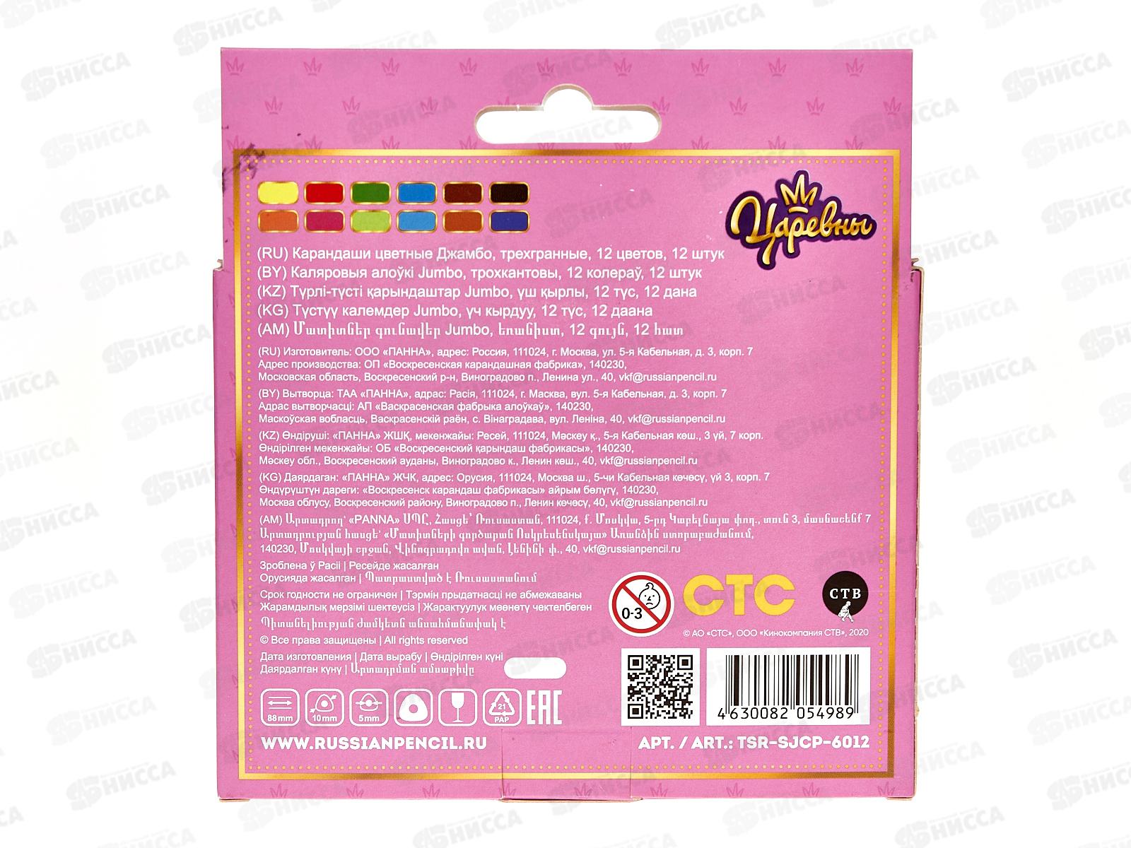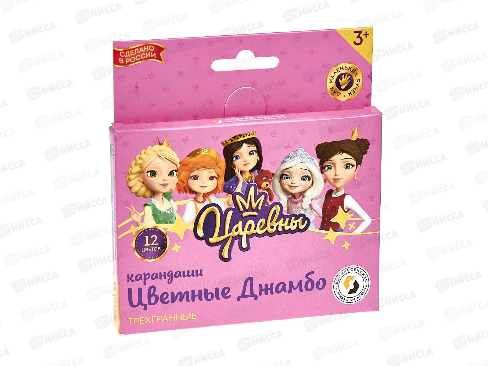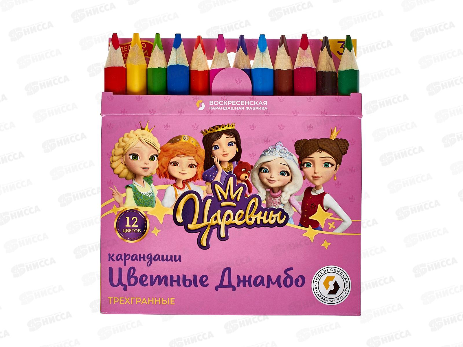 Карандаши 12 цветов ВКФ "Царевны", Джамбо, трехгранные, короткие TSR-SJCP-6012 *12/72