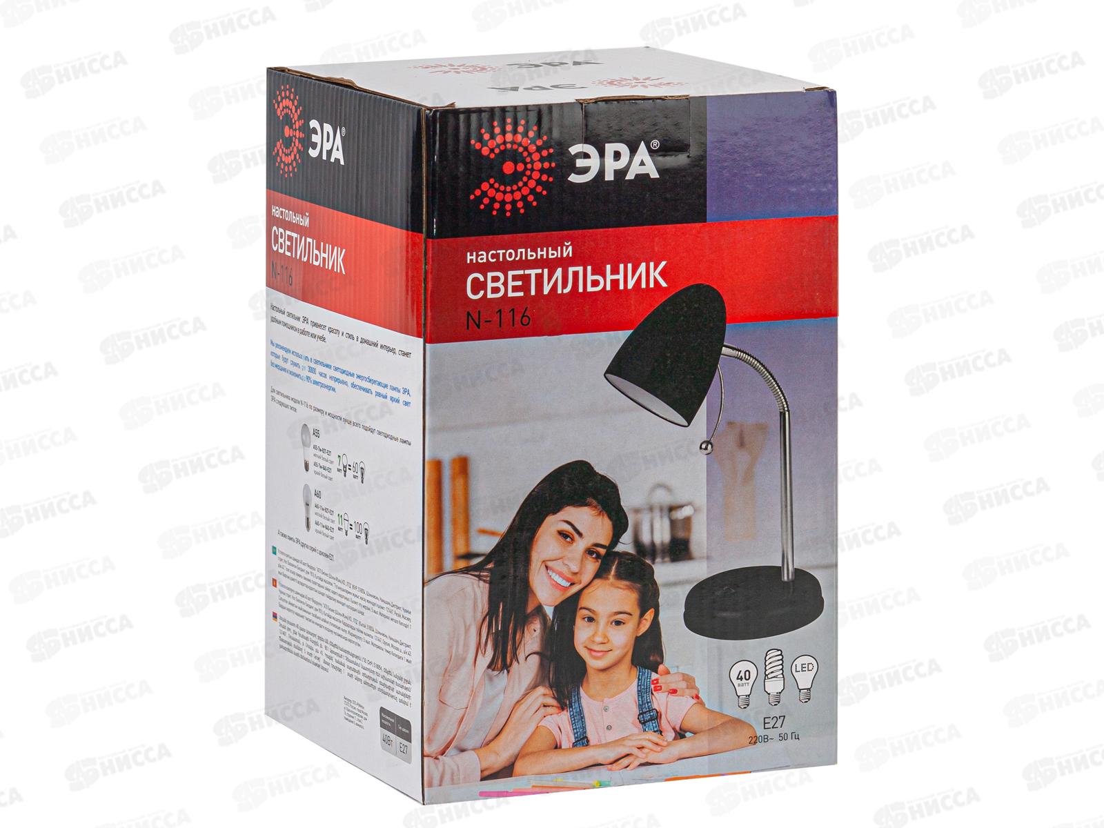 Настольный светильник ЭРА N-116-Е27-40W-BK с цоколем Е27 компактного размера для удобного размещения на столе. Может использоваться с лампой накаливания, компактной люминесцентной лампой (КЛЛ) или светодиодной (LED) лампой. У светильника металлические стойка и плафон, выключатель на основании. Высота расположения плафона регулируется сгибающейся стойкой, направление света - наклоном и поворотом плафона в любом направлении.