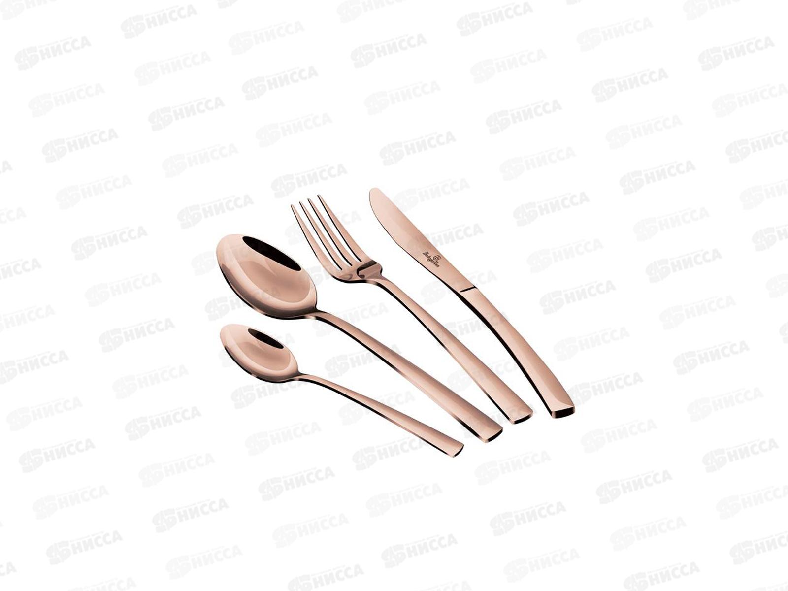 Столовые приборы 16 предметов. Нож столовый 7мм - 4 шт, вилка столовая 3,5мм - 4 шт, ложка столовая 3,5мм - 4 шт, чайная ложка 2,5мм - 4 шт. Материал: нержавеющая сталь/ зеркальная полировка. Цвет: розовое золото.