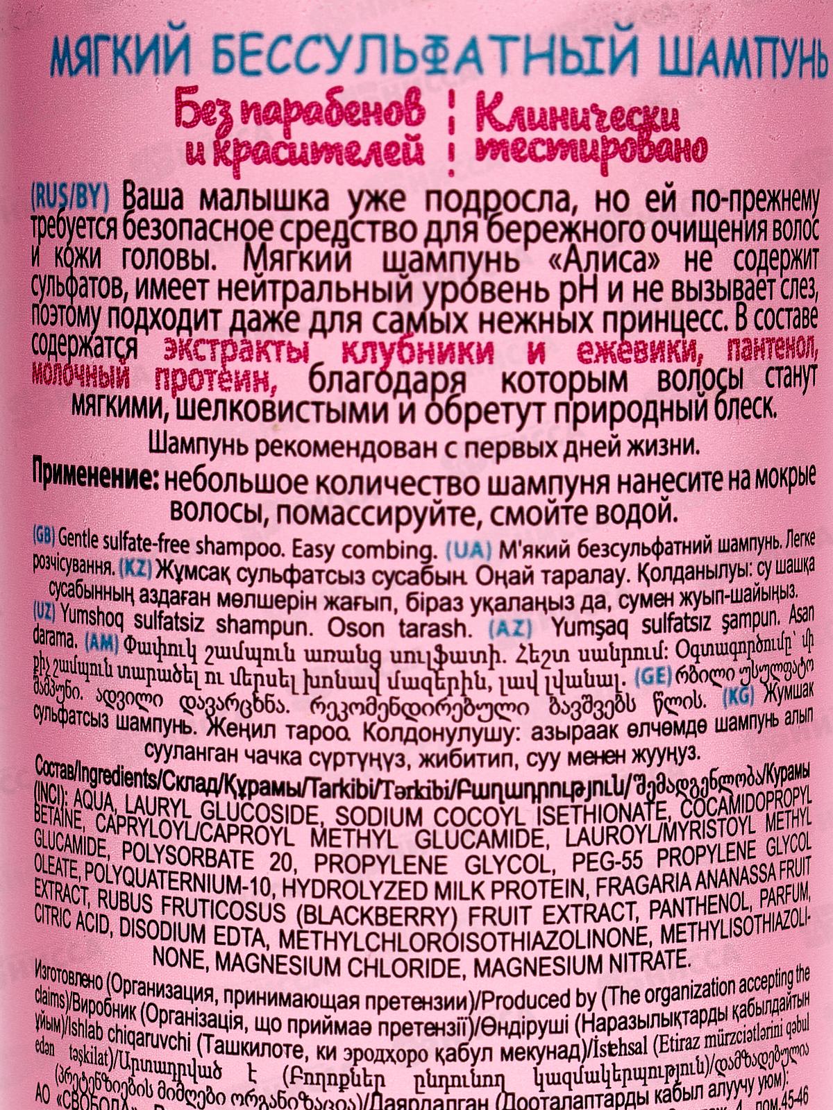 Свобода Алиса шампунь Легкое расчесывание мягкий бессульфатный 140мл *12