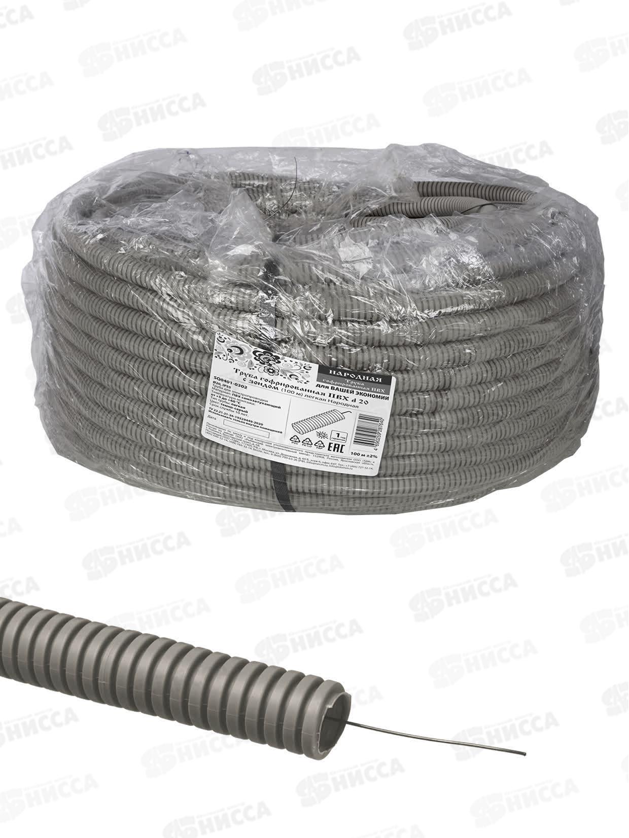 Труба гофрированная ПВХ d20 с зондом (100м) легкая Народная TDM, 0302 *100