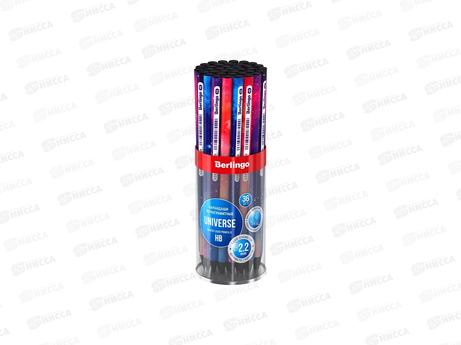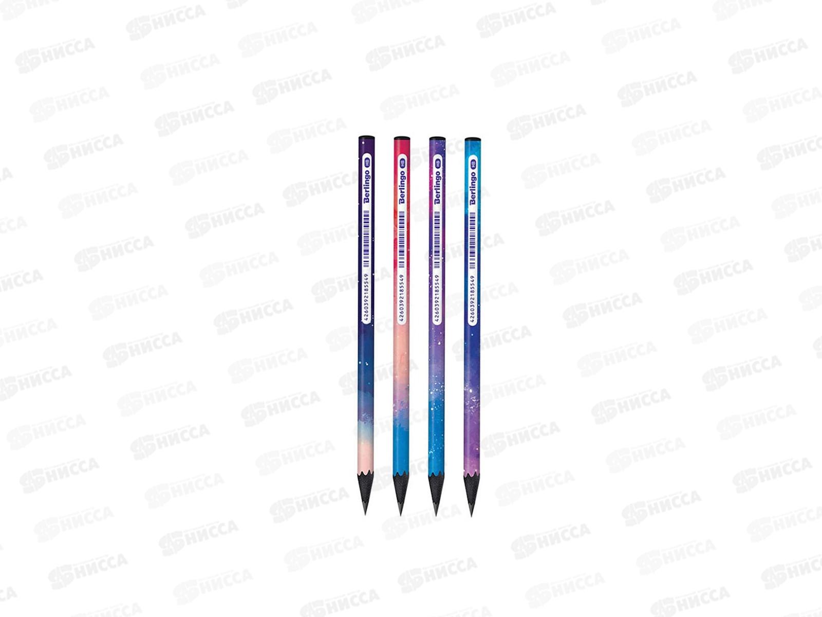 Чернографитный ударопрочный карандаш Berlingo "Universe" из черного дерева, с заточкой. Матовое покрытие корпуса. Не ломается при падении. Подходит для черчения и рисования.