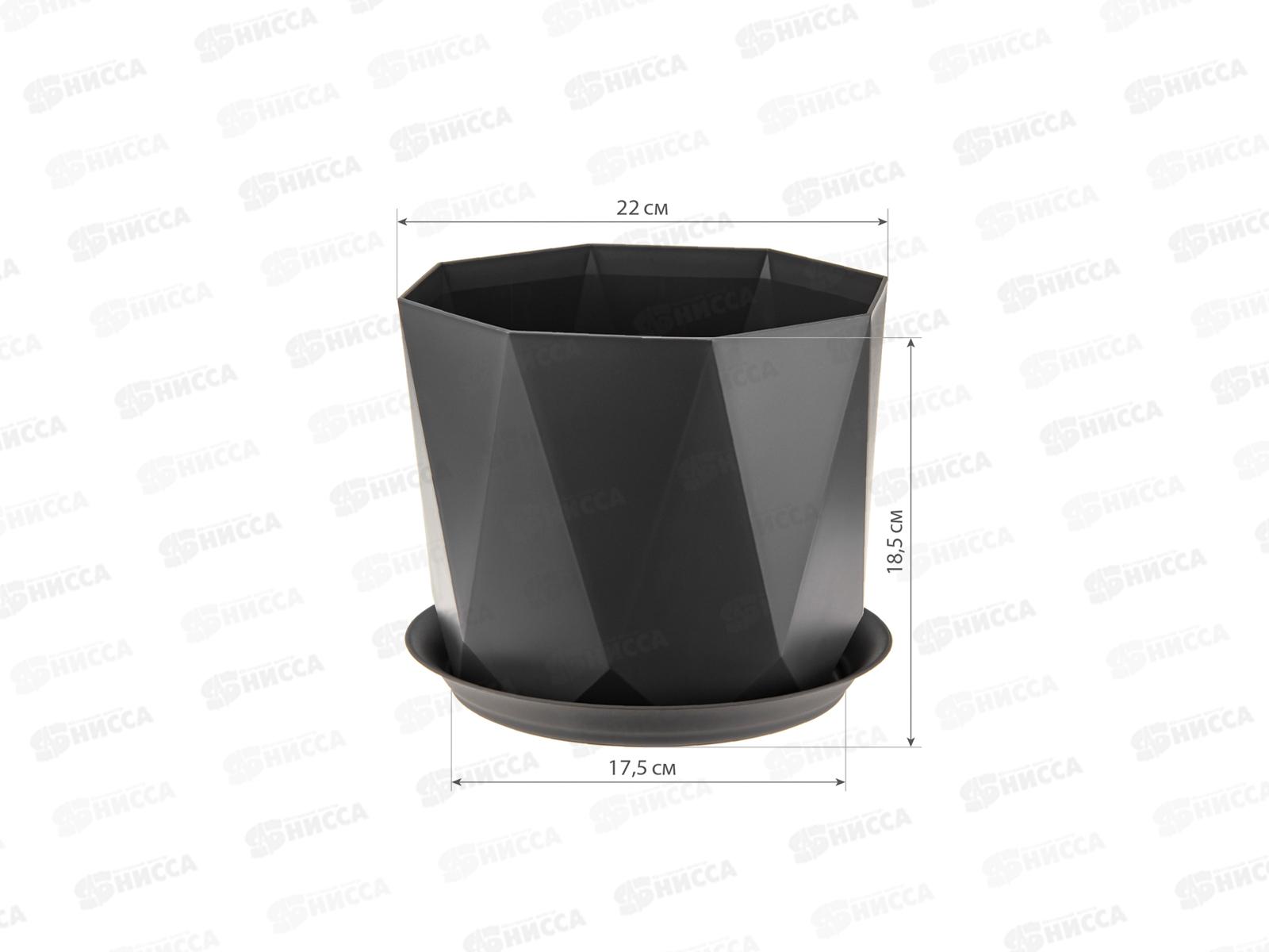 Кашпо ПРИЗМА D220мм 4,7л с поддоном Графитовый М3139 *8