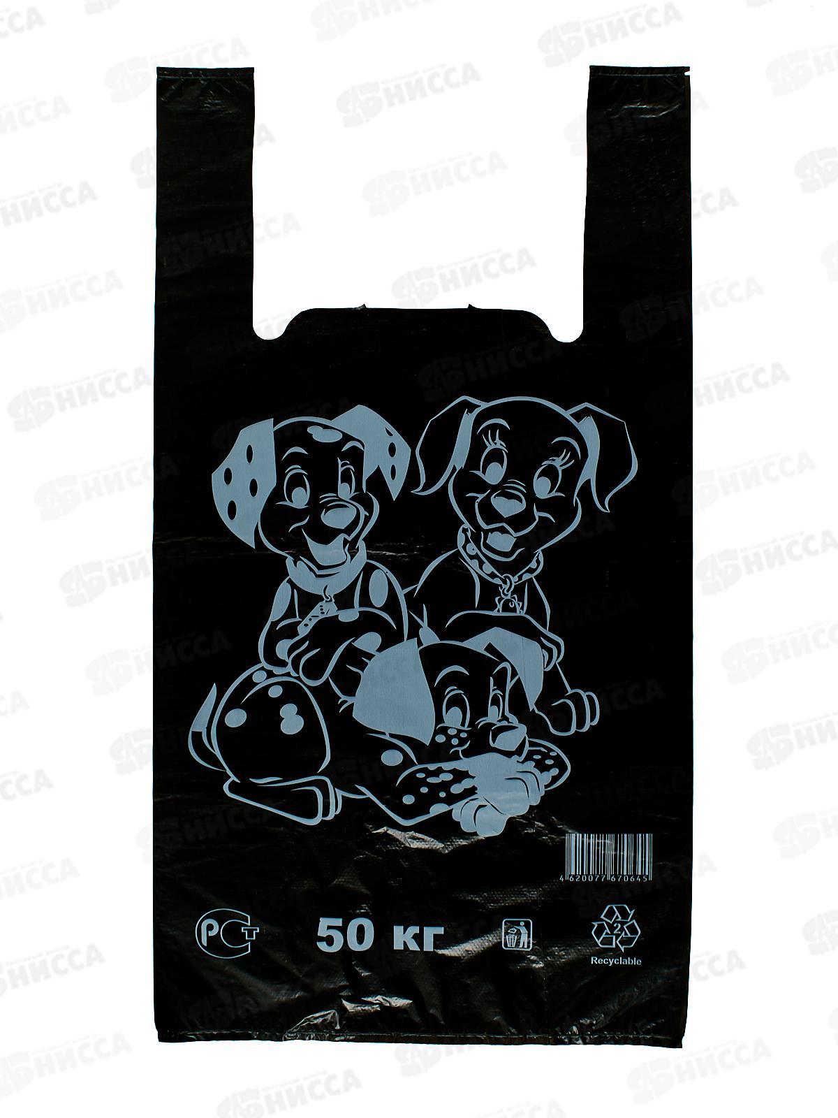 Пакет - майка черный с дизайном "Далматины", 30х55 см. Самым популярным видом пакетов среди покупателей являются пакеты-майки. Они очень вместительны благодаря своей конструкции и наличию боковых складок, поэтому они используются для хранения и транспортировки любых товаров, в том числе и продуктов питания. Имеют удобные ручки, устойчивы к растяжению.