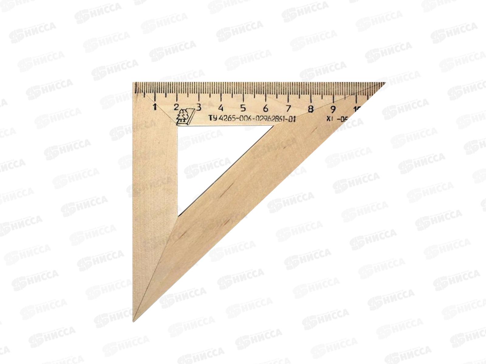 Прямоугольный треугольник с углами при основании 45 градусов. Используется для занятий черчением, построения графиков, проектирования. Длина стороны с делениями 110 мм.