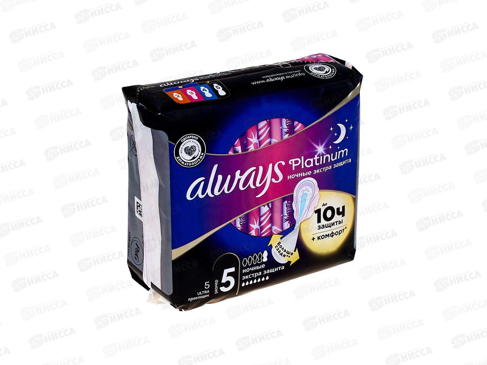 Прокладки ОЛВЕЙС ультра найт Platinum 5шт Single ночные экстра защита *10