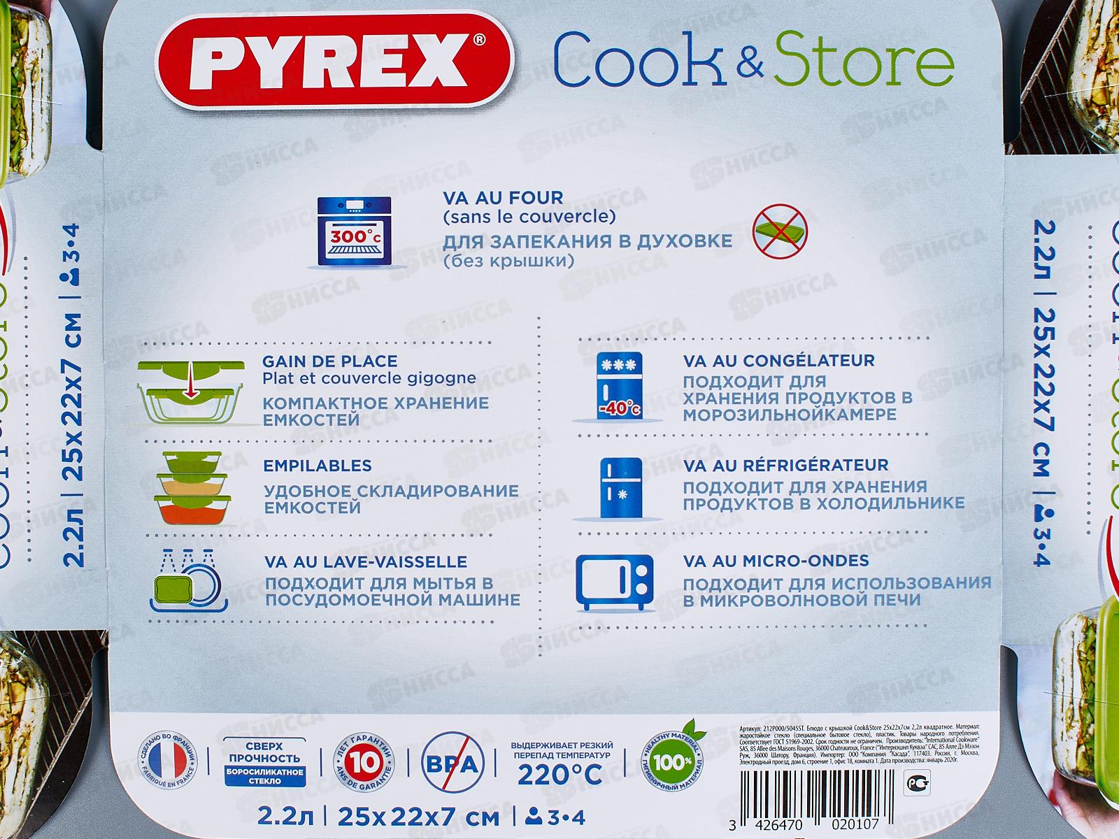 Форма Pyrex "Cook & Store" изготовлена из прозрачного жаропрочного стекла. Непористая поверхность исключает образование бактерий, великолепно моется. Изделие идеально подходит для приготовления в духовом шкафу. Выдерживает перепад температур от -40°C до +300°C.Форма Pyrex "Cook & Store" подходит для использования в микроволновой печи, приготовления блюд в духовке, хранения пищи в холодильнике. Можно мыть в посудомоечной машине.