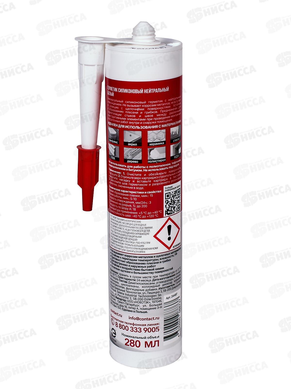 Герметик силиконовый "КОНТАКТ" нейтральный, белый, 280мл, 497 *12