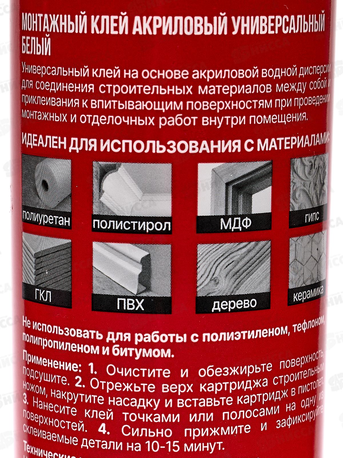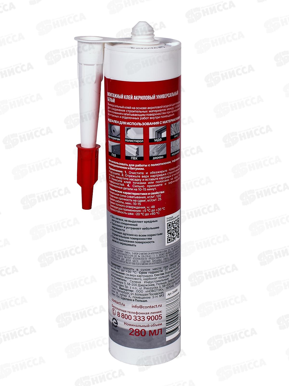 Клей монтажный акриловый "КОНТАКТ" универсальный, белый, 280мл, 499 *12