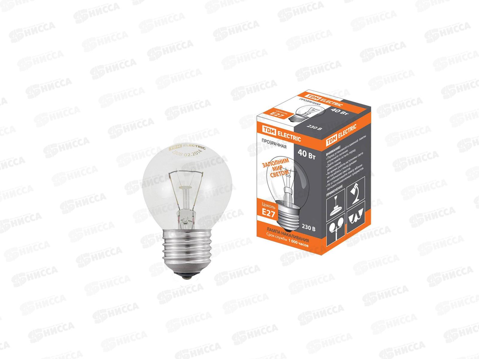 Электрическая лампочка 40 Вт TDM Е27, шар прозрачный, 0002 *10/100