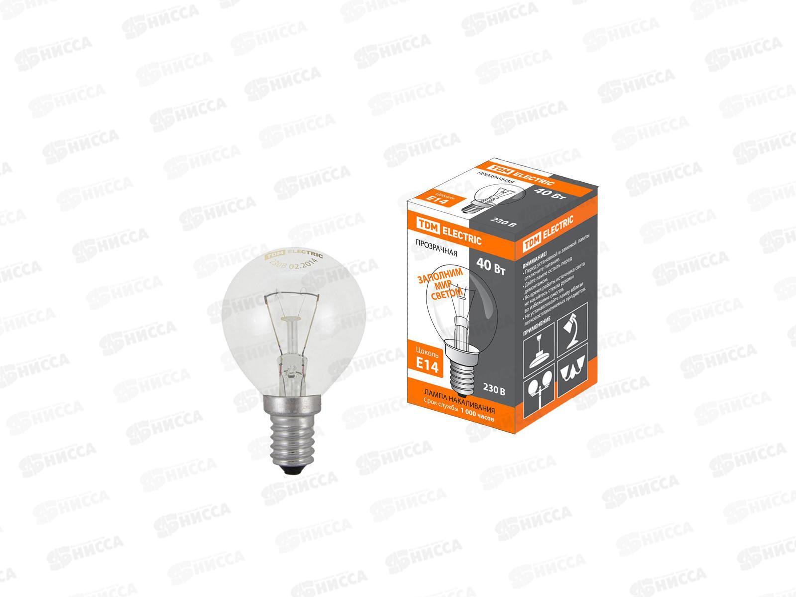 Электрическая лампочка 60 Вт TDM Е14, шар прозрачный, 0003 *10/100