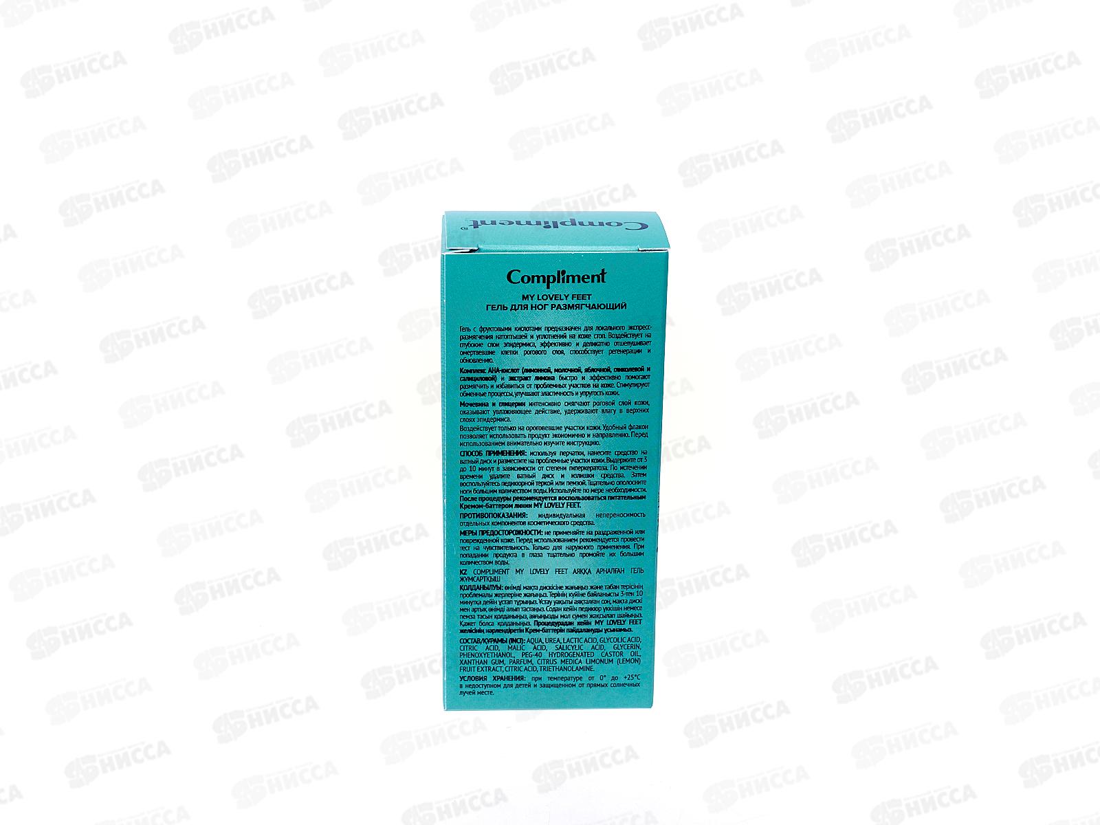 Гель с фруктовыми кислотами предназначен для локального экспресс-размягчения натоптышей и уплотнений на коже стоп. Воздействует на глубокие слои эпидермиса, эффективно и деликатно отшелушивает омертвевшие клетки рогового слоя, способствует регенерации и обновлению. Комплекс АНА-кислот (лимонной, молочной, яблочной, гликолевой и салициловой) и экстракт лимона быстро и эффективно помогают размягчить и избавиться от проблемных участков на коже. Стимулируют обменные процессы, улучшают эластичность и упругость кожи. Мочевина и глицерин интенсивно смягчают роговой слой кожи, оказывают увлажняющее действие, удерживают влагу в верхних слоях эпидермиса. Воздействует только на ороговевшие участки кожи. Удобный флакон позволяет использовать продукт экономично и направленно. Перед использованием внимательно изучите инструкцию. Способ применения: используя перчатки, нанесите средство на ватный диск и разместите на проблемные участки кожи. Выдержите от 3 до 10 минут в зависимости от степени гиперкератоза. По истечении времени удалите ватный диск и излишки средства. Затем воспользуйтесь педикюрной теркой или пемзой. Тщательно ополосните ноги большим количеством воды. Используйте по мере необходимости. После окончания процедуры рекомендуется нанести питательный Крем-баттер для ног серии Compliment MY LOVELY FEET.