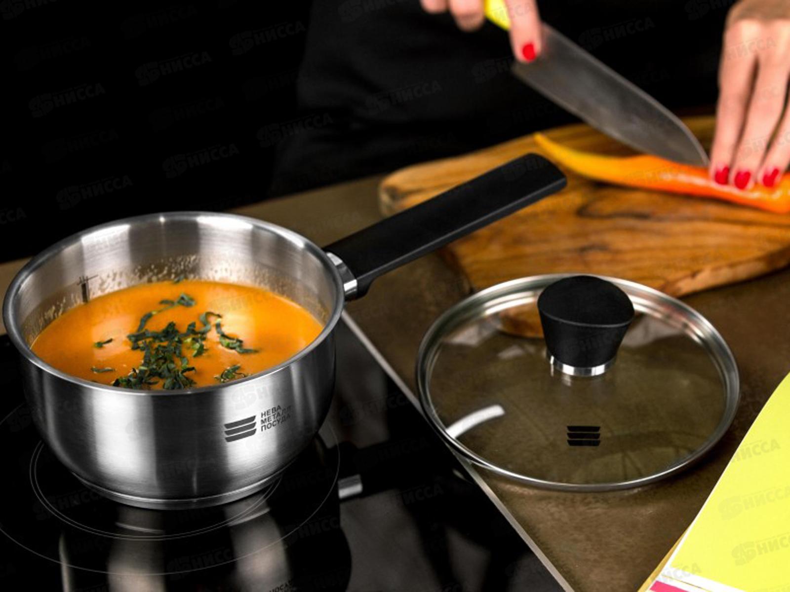 Поверхность изделий имеет сатиновую полировку внутри и снаружи. Капсулированное дно с промежуточным слоем алюминия обеспечивает равномерный нагрев и долго сохраняет тепло.