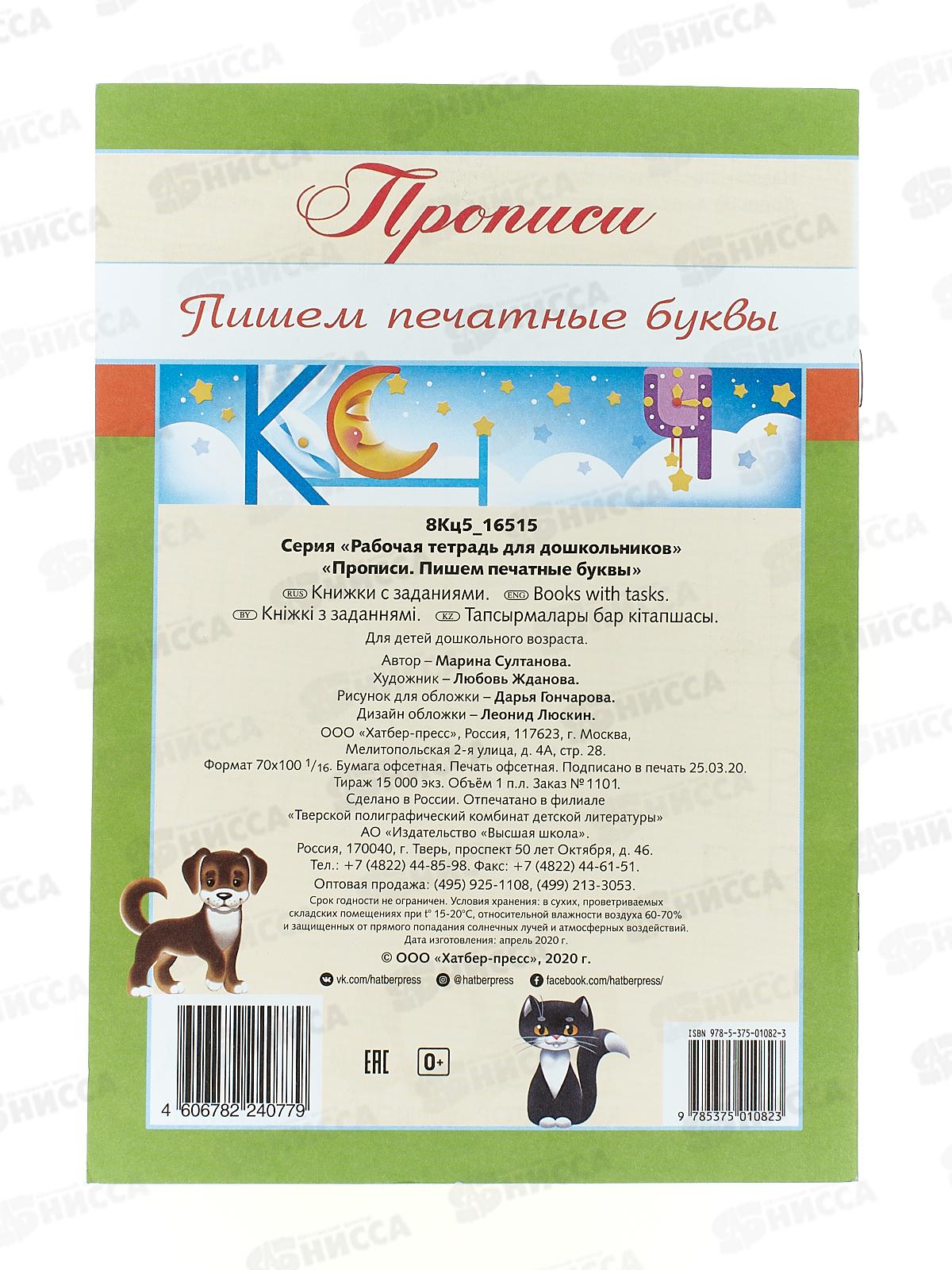 Рабочая тетрадь Hatber Прописи-пишем печатные буквы, 3-4года.16515