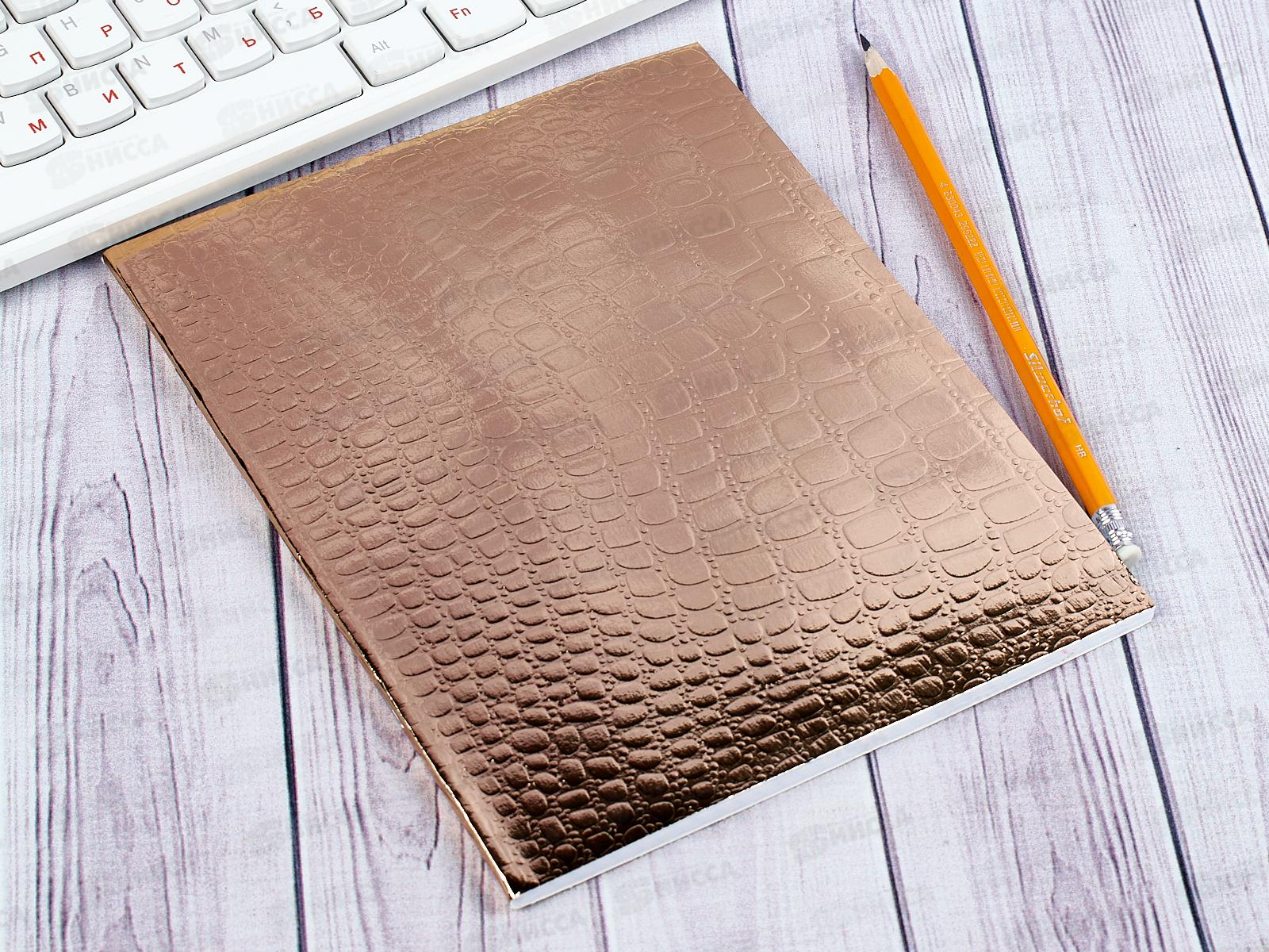 Тетрадь 48 листов клетка Hatber б/в METALLIC CROCO золото *10/100