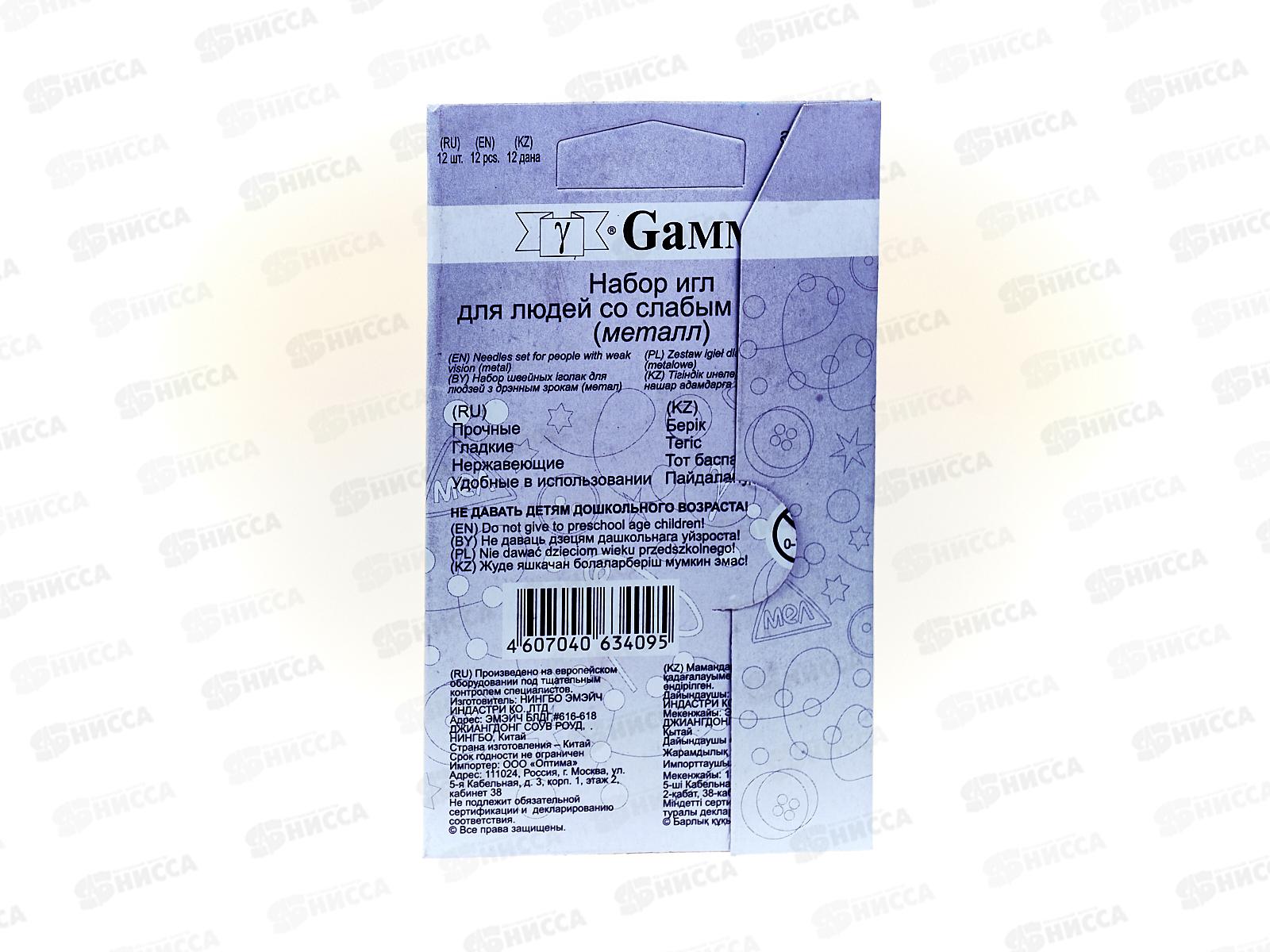 Иглы для шитья ручные "Gamma" HN-07 для слабовидящих 12шт *36