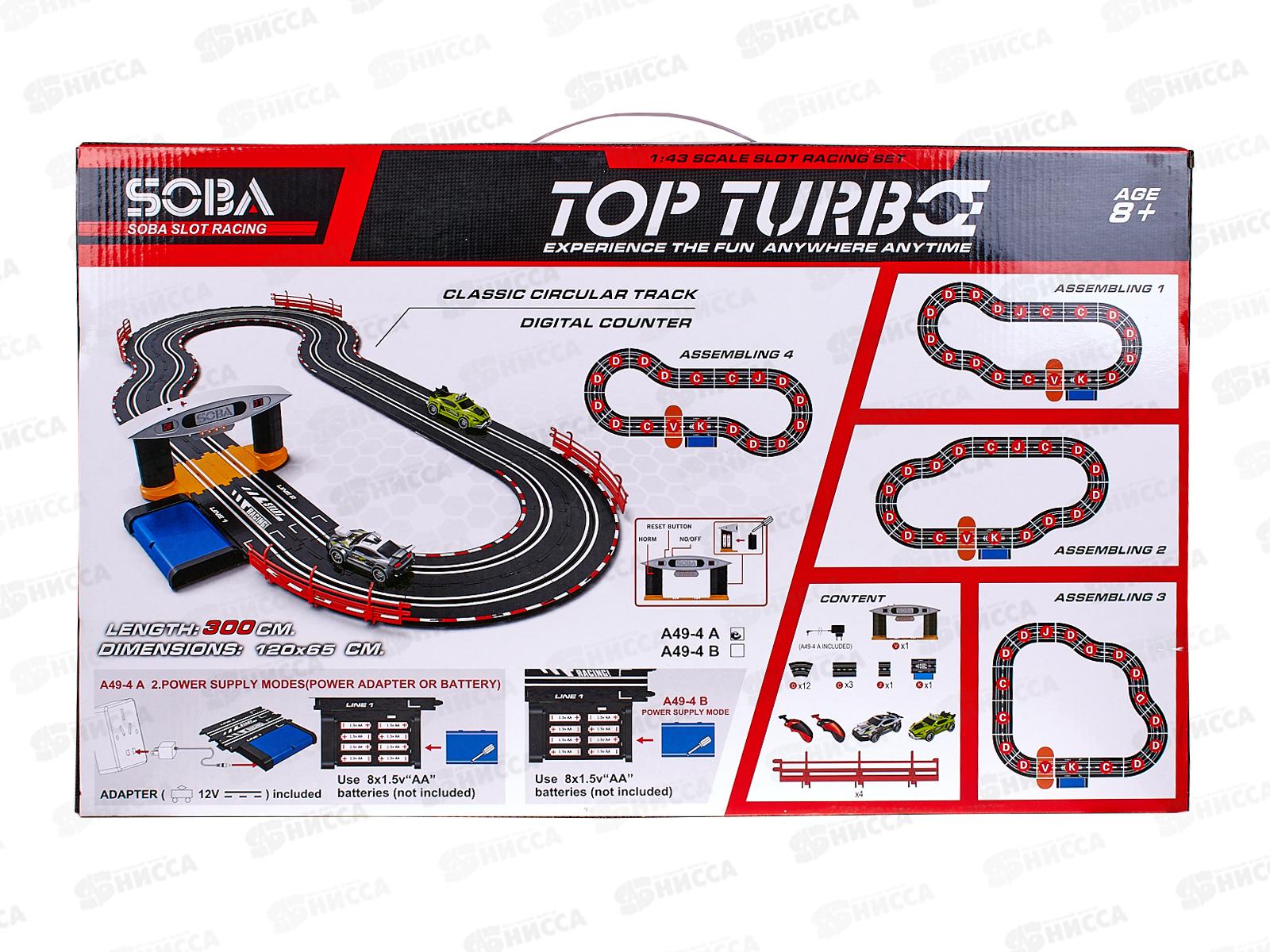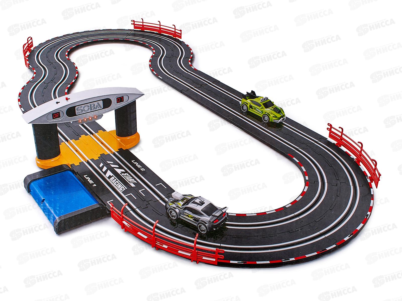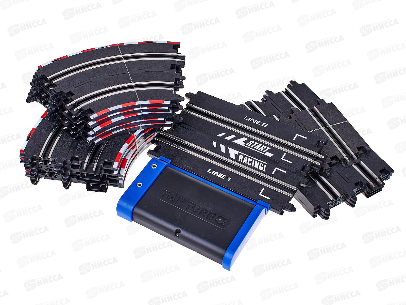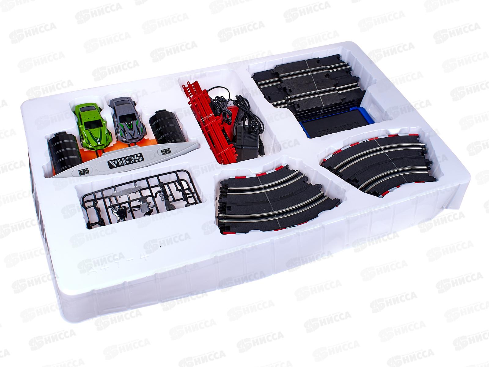 Гоночный трек представляет собой сборную трассу для игровых автогонок. Смысл игры в том, чтобы игрушечный автомобиль без каких-либо препятствий проехал от старта к финишу. Длина пути: 300 см. Размер в собранном виде 120х65 см. В комплект входит: трасса с бортиками, 2 машинки, 2 пульта управления, ворота с цифровым табло со звуком, адаптер 12V. Система питания 2 в 1: адаптер 12V (входит в комплект) или батарейки 8хAA (не в комплекте). Для цифрового табло (показывает количество пройденных кругов) требуются батарейки 2хАА (не входят в комплект).