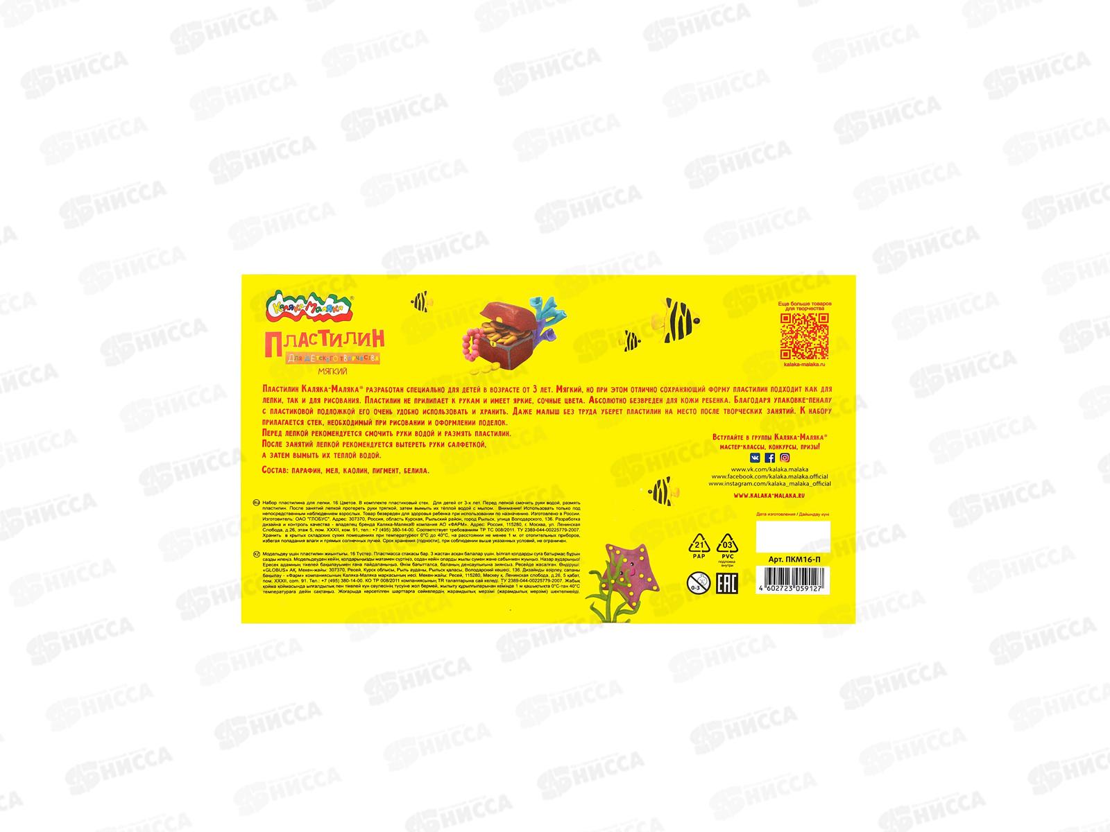 Пластилин для детского творчества Каляка-Маляка - это улучшенная формула классического пластилина. Благодаря повышенному содержанию воска, маленькие любители творчества без труда смогут смять брусок и придать ему нужную форму. Имеет яркие сочные цвета, мягко растягивается и не рвется, прекрасно держит форму. При этом не окрашивает руки, не прилипает и не оставляет масляных пятен. Изготавливается на современном российском производстве, соответствует всем стандартам безопасности детской продукции. Пластилин для детского творчества может применяться для творчества детей, начиная от трех лет. Развивает мелкую моторику рук и творческое мышление у детей. Прекрасно подходит как для создания фигур, так и для рисования пластилином. В набор входит 16 цветов: белый, голубой, салатовый, красный, светло-коричневый, темно-розовый, желтый, серый, розовый, синий, оранжевый, зеленый, коричневый, коралловый, фиолетовый. черный