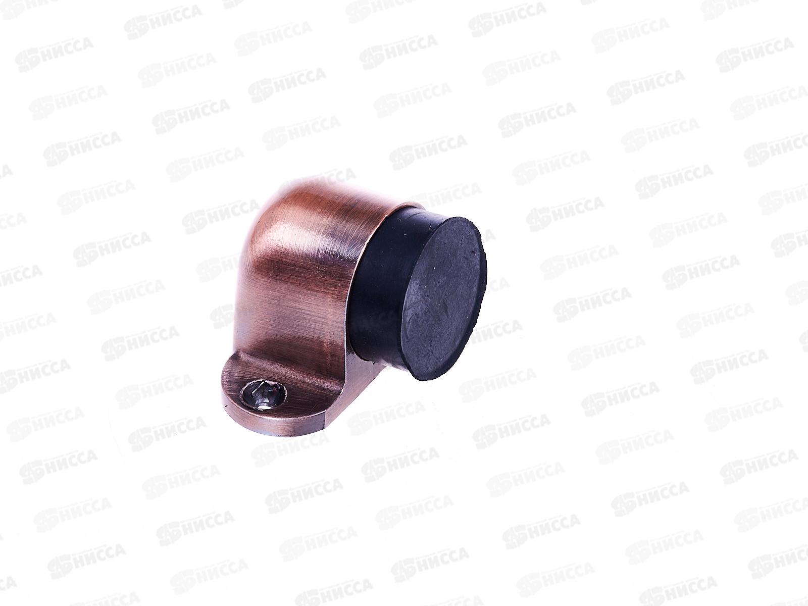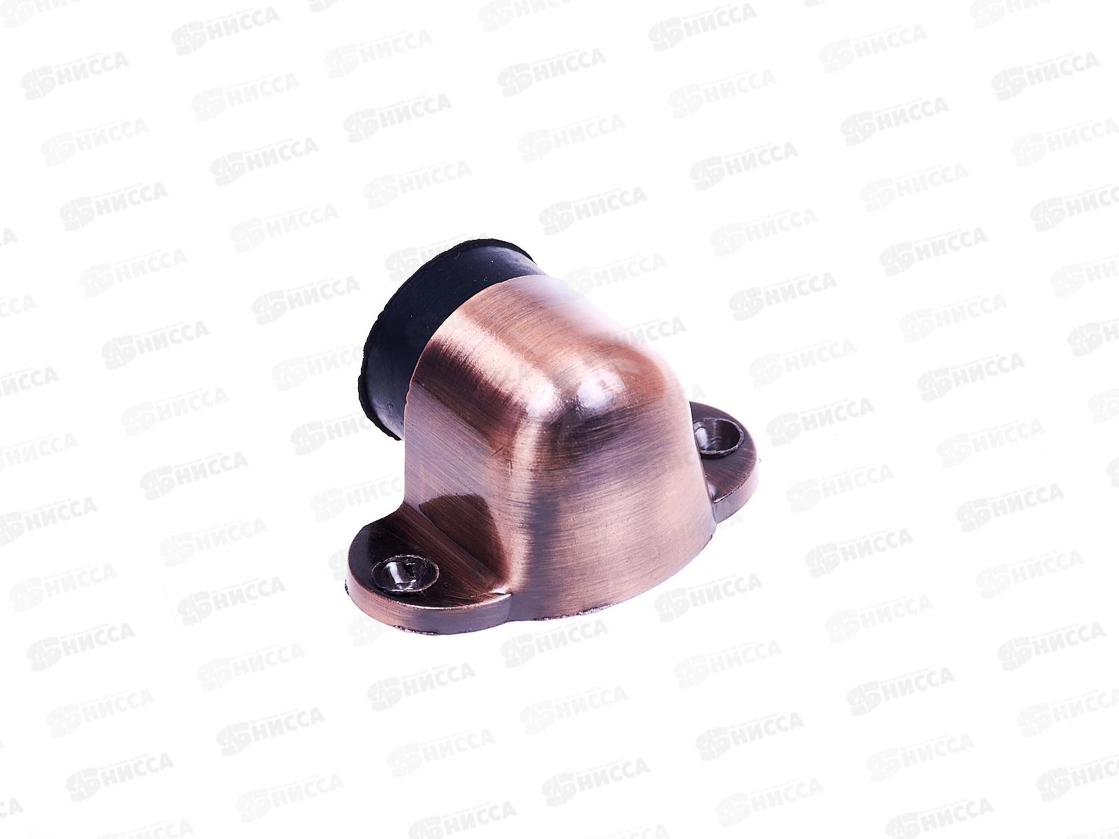 Ограничитель/упор дверной напольный. Материал - сплав ЦАМ, гальваническое покрытие, материал накладки - ударопрочный пластик. Имеет форму пушки. Ширина основания - 52мм.Шурупы в комплекте.